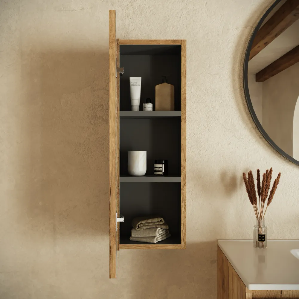 Il colore rovere chiaro conferisce un tocco sofisticato e accogliente, rendendo questa colonna un complemento versatile, perfetto anche per bagni di dimensioni ridotte.