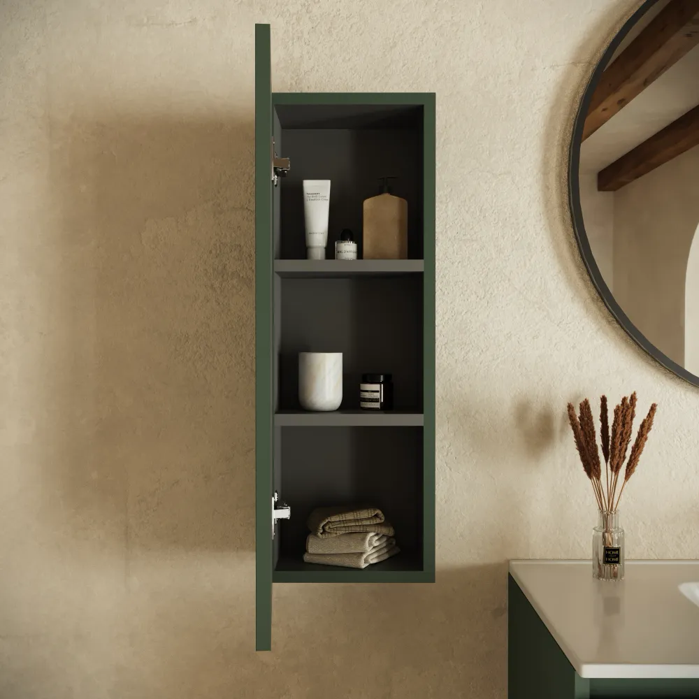 Il colore verde foresta conferisce un tocco sofisticato e accogliente, rendendo questa colonna un complemento versatile, perfetto anche per bagni di dimensioni ridotte.