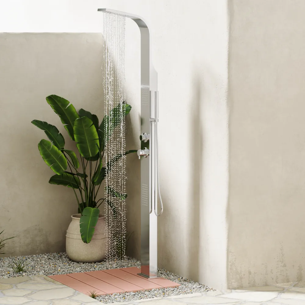 Questa colonna doccia da esterno è progettata per offrire comfort, resistenza e funzionalità avanzate, risultando ideale per giardini, piscine, spa, stabilimenti balneari o aree wellness.