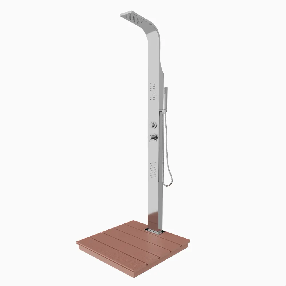 Colonna doccia da esterno cromato 3 funzioni con base in plastica effetto legno | Gincko