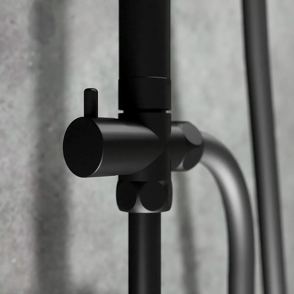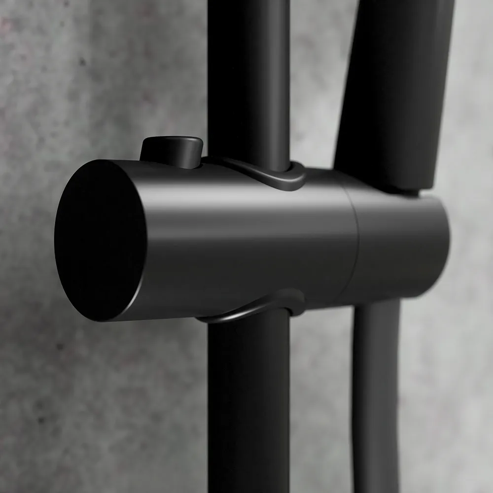 La struttura è realizzata in acciaio inox mentre il deviatore è completamente in ottone. I materiali scelti e le finiture in nero opaco di alta qualità rendono la colonna doccia resistente anche a due nemici così aggressivi come il calcare e gli sbalzi termici.