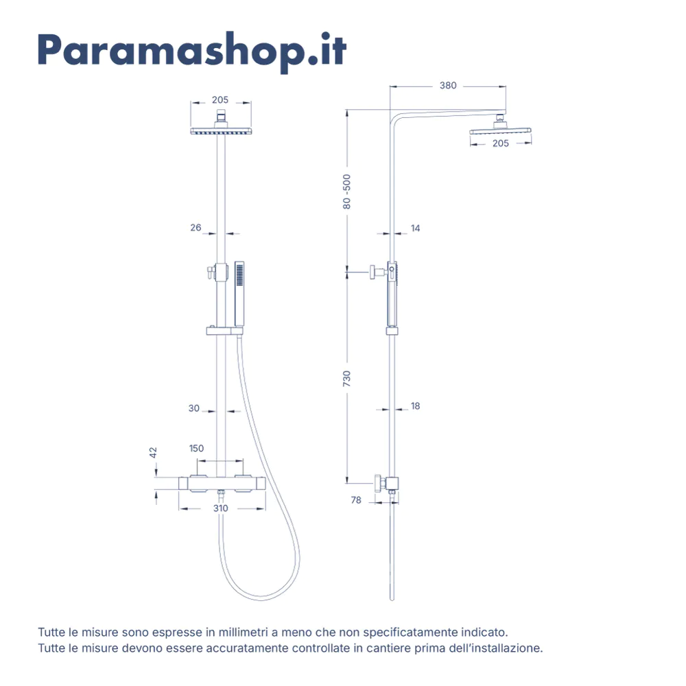 Colonna doccia soffione 20,5x20,5 cm in ABS finitura cromata | Serio