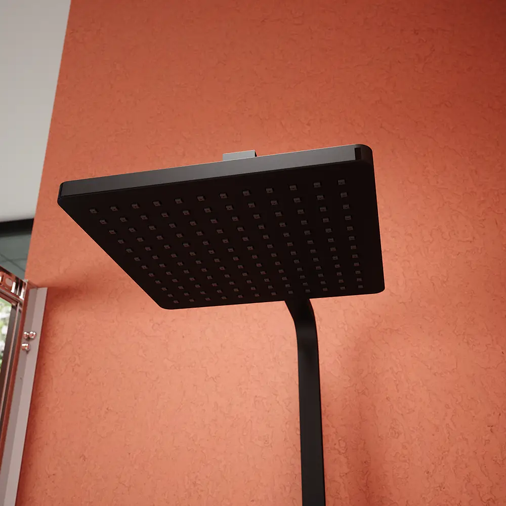 Colonna doccia soffione 20,5x20,5 cm in ABS finitura nera opaca | Serio