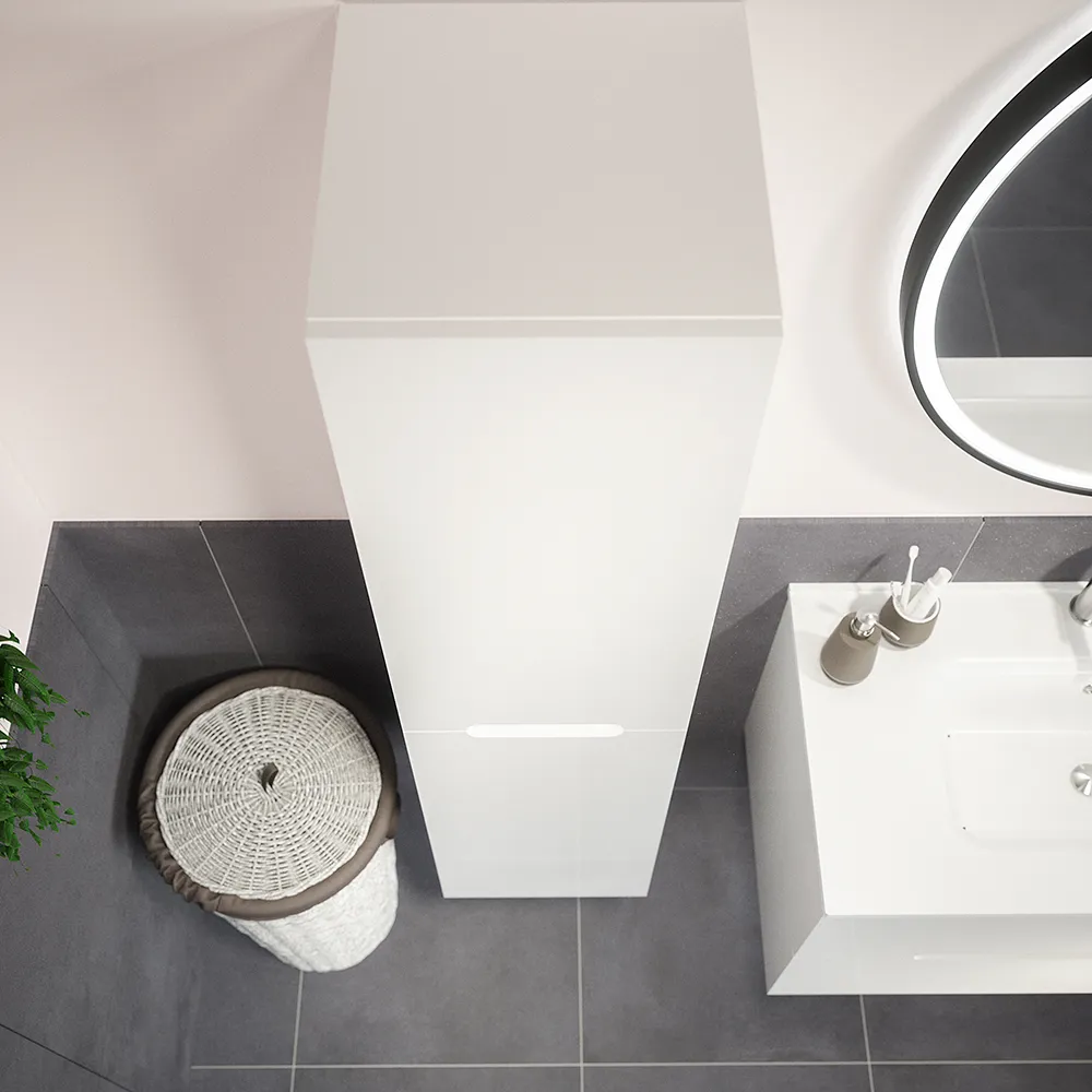 Realizzata in MDF con una finitura bianco lucido, la colonna serie Valdivia vanta una resistenza all'acqua e all'umidità, garantendoti una bellezza duratura nel tempo. Le sue linee essenziali e moderne si adattano con eleganza a qualsiasi stile di arredamento, dal classico al contemporaneo, donando un tocco di raffinatezza al tuo bagno. L'installazione sospesa contribuisce a creare un design leggero, donando ampiezza allo spazio.