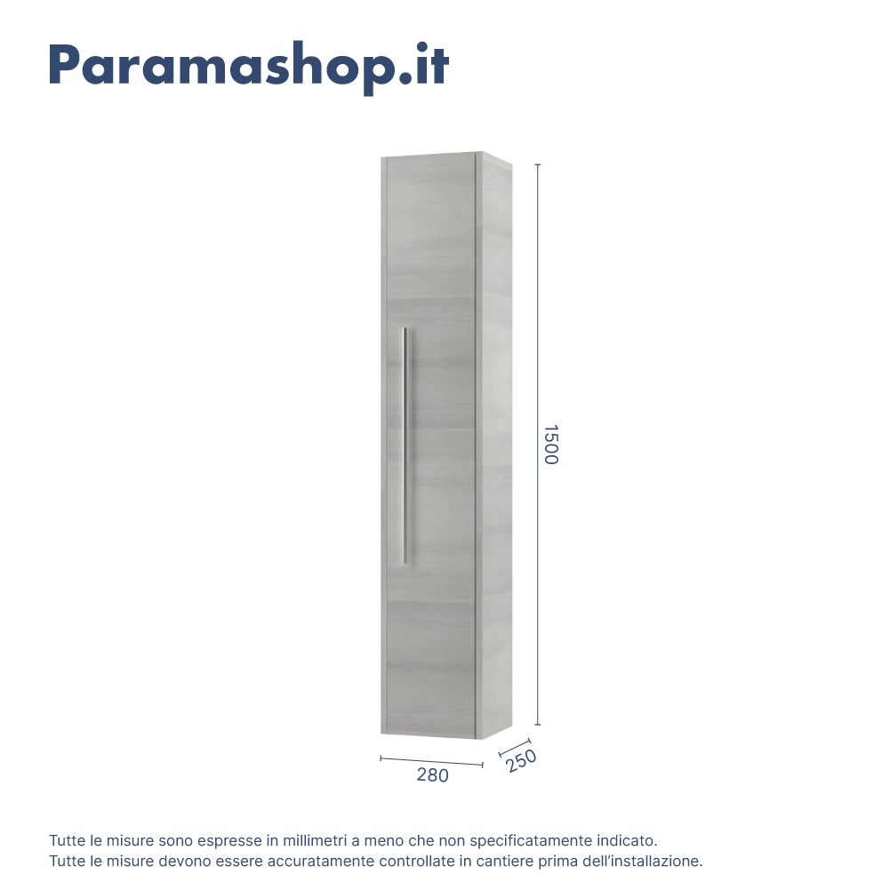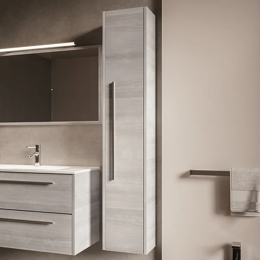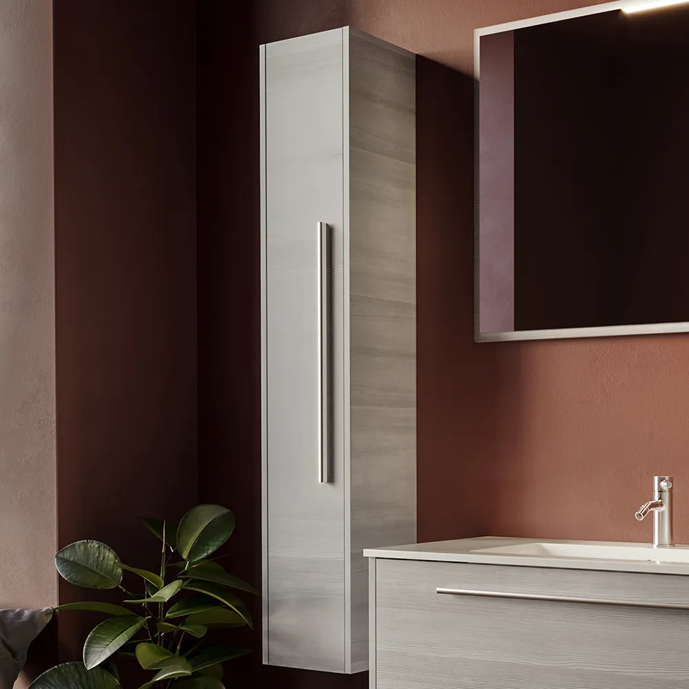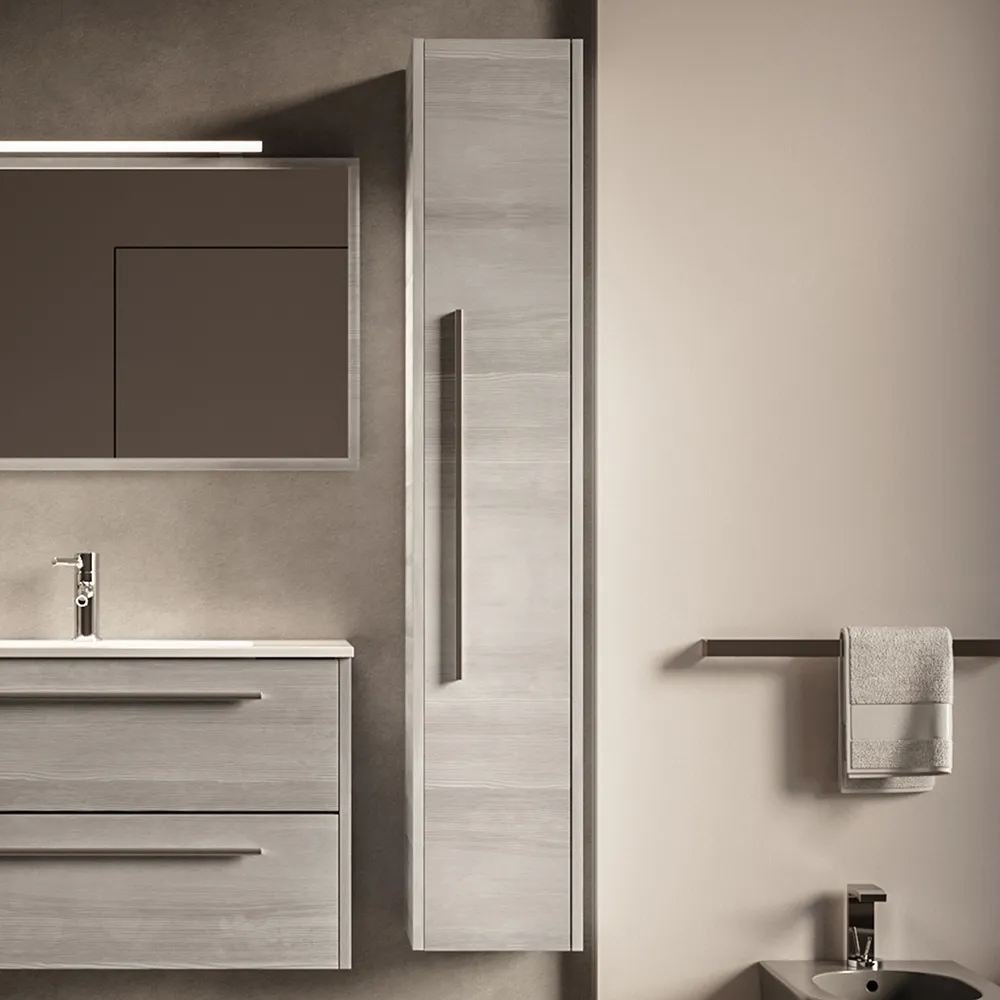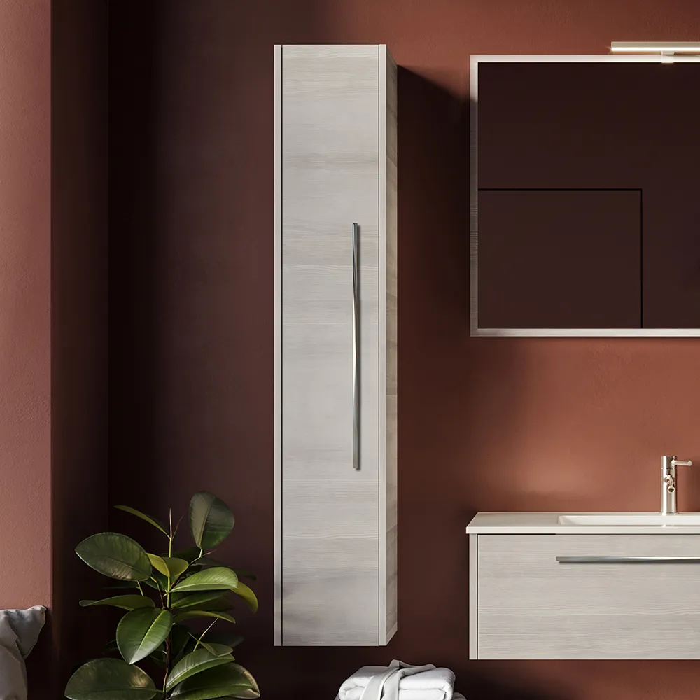 La finitura rovere cenere, con la sua eleganza discreta, si adatta facilmente a qualsiasi stile di arredo, completando armoniosamente rubinetteria e sanitari di tendenze diverse. Realizzata in MDF di alta qualità, la colonna è resistente all'umidità e garantisce lunga durata. Il design essenziale e contemporaneo permette di integrarla perfettamente in qualsiasi bagno, creando un ambiente raffinato e funzionale.