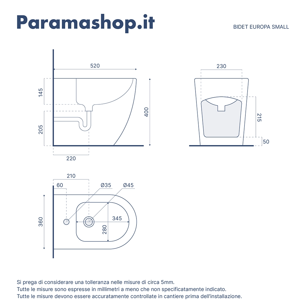 La curva tecnica ed il sifone per il bidet non sono inclusi ma possono essere acquistati separatamente nell'apposita sezione sul nostro store.
