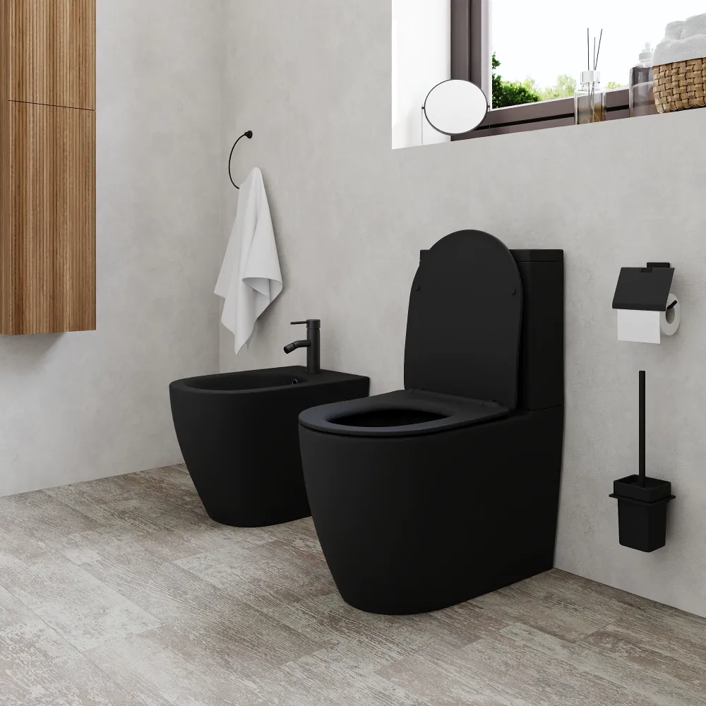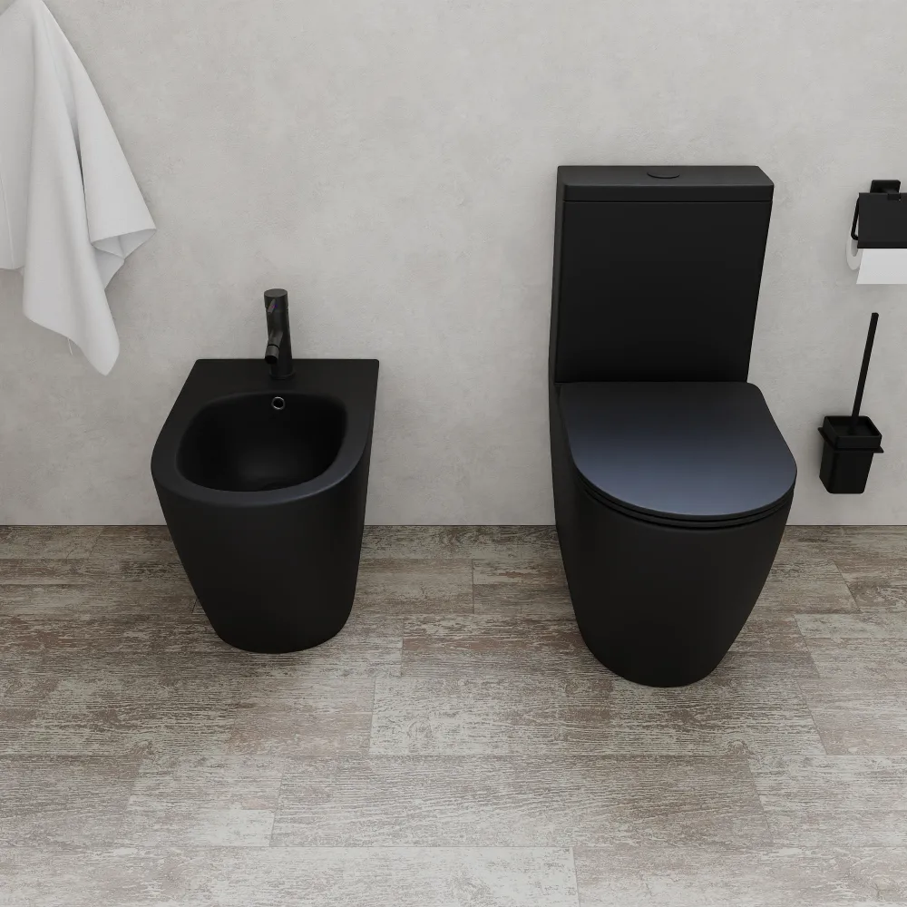 La collezione di sanitari in ceramica mod. Europa rappresenta la scelta ideale per un bagno moderno e funzionale. Con il suo design contemporaneo caratterizzato da linee morbide e tondeggianti, questa coppia di sanitari si presta ad apportare un tocco di eleganza a qualsiasi spazio bagno. I sanitari filomuro Europa sono realizzati in ceramica di alta qualità con finitura di colore nero opaco.