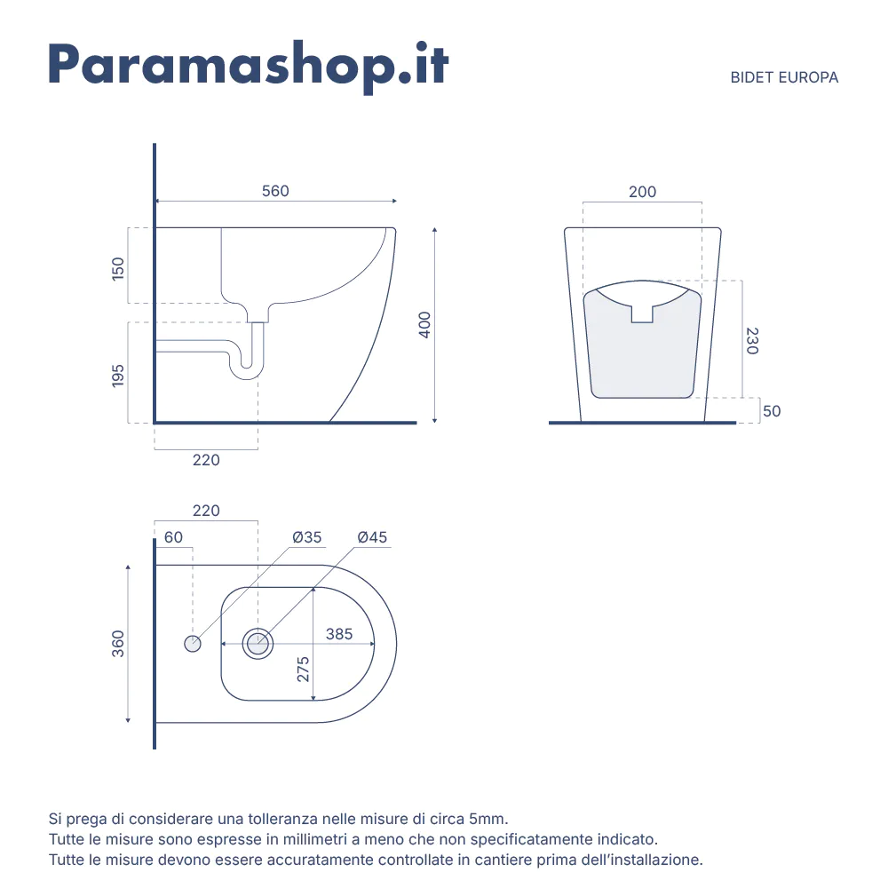 La curva tecnica ed il sifone per il bidet non sono inclusi ma possono essere acquistati separatamente nell'apposita sezione sul nostro store.