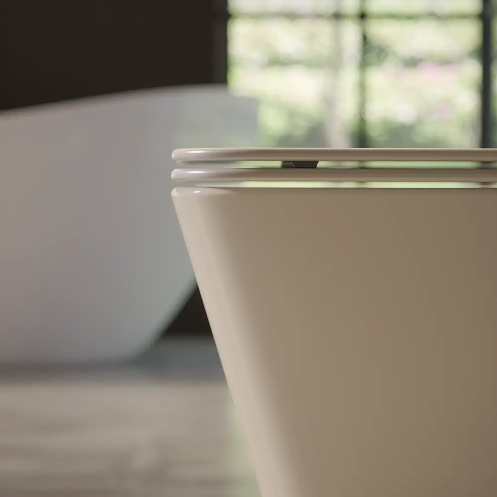 Questa coppia di sanitari è realizzata in ceramica di alta qualità con finitura bianco lucida. Il design rimless della serie Londra, ovvero l’assenza di brida all’interno del vaso sospeso rende il design più minimale, agevola il risparmio idrico e favorisce un'igiene più profonda. Il sedile copri-wc in materiale termoindurente, grazie alle sue cerniere rallentate, garantisce chiusure delicate e silenziose.