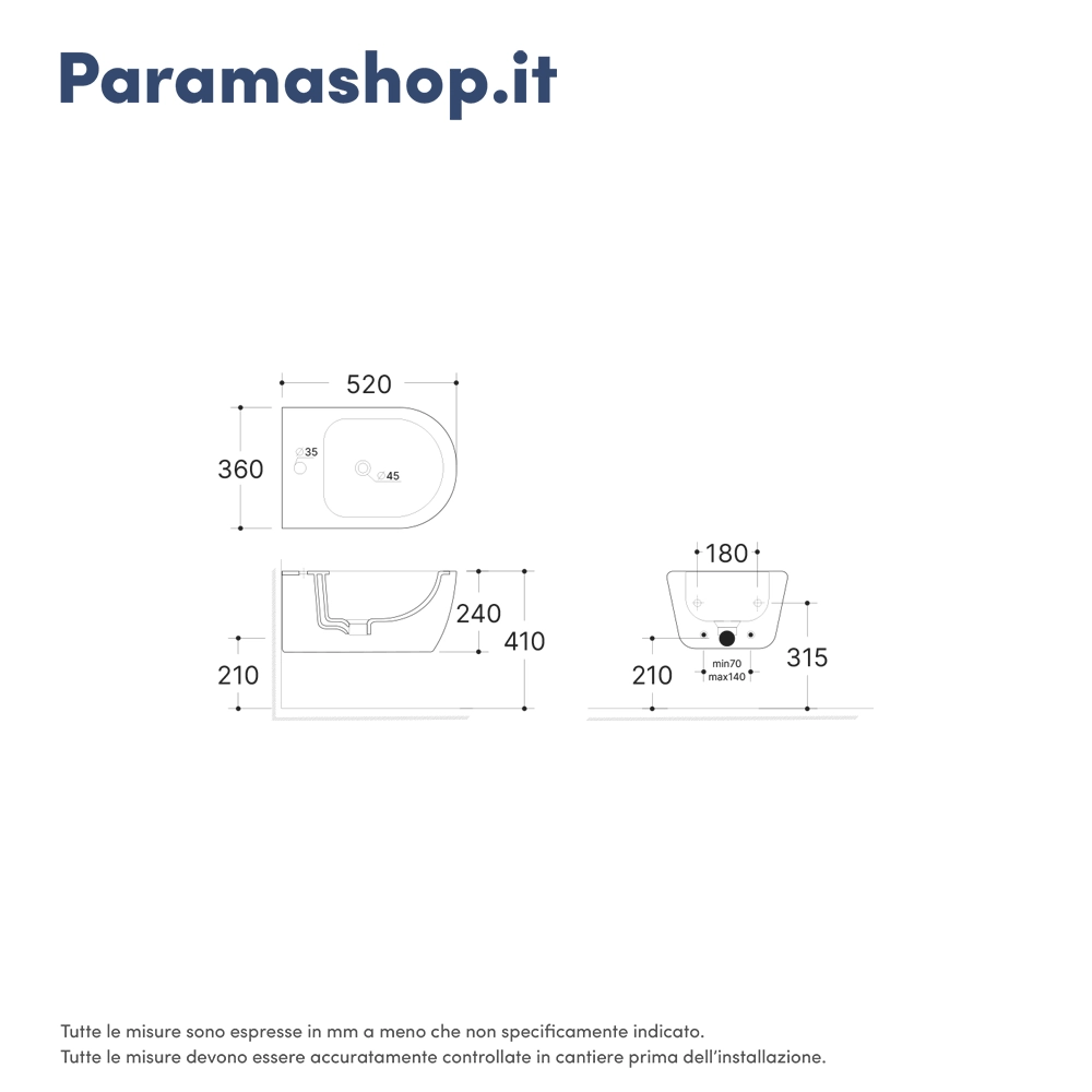 | Foro di scarico: | A parete |