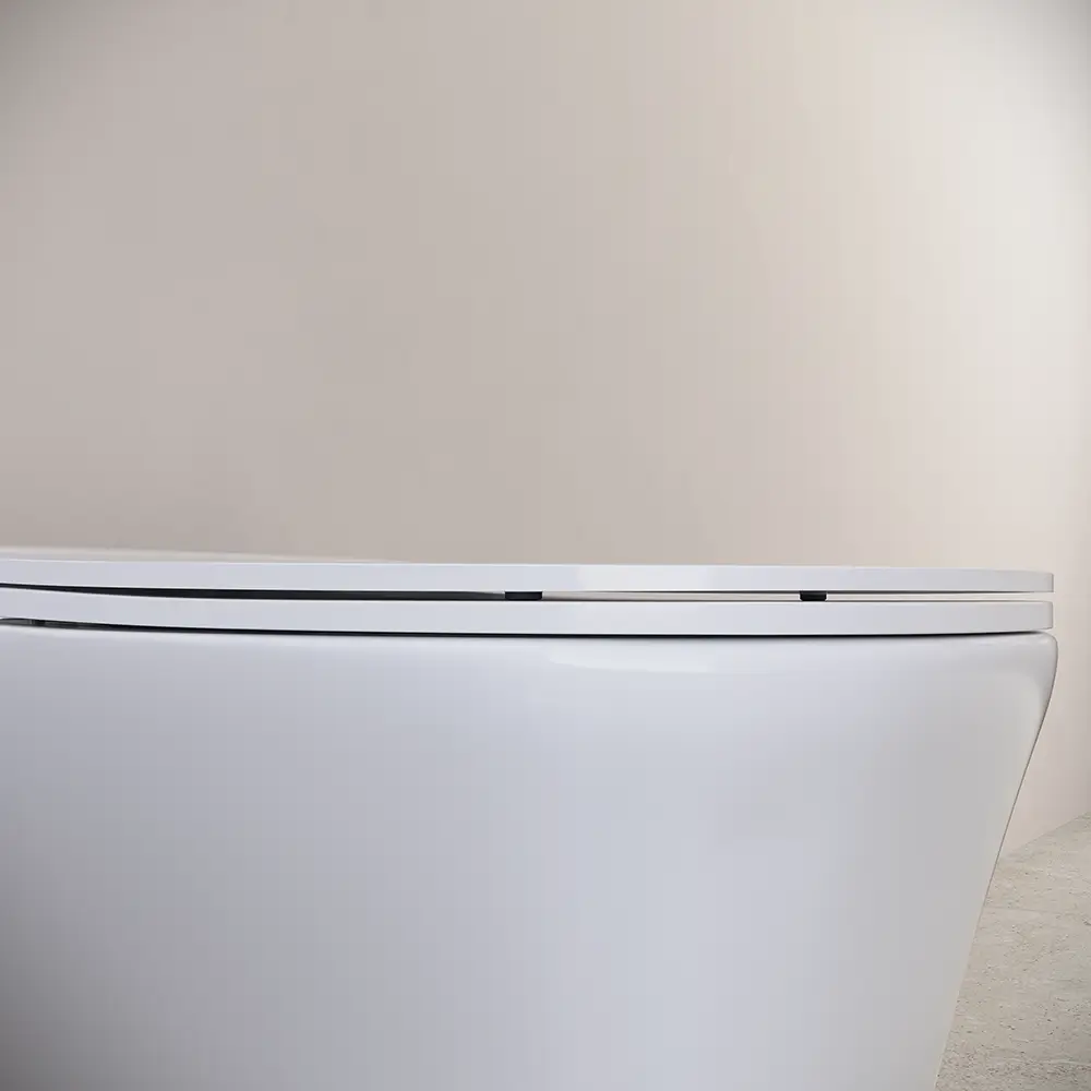 Il set wc+bidet è fornito assieme all'apposito sedile coprivaso con chiusura rallentata, o soft-close. Le speciali cerniere permettono una chiusura dolce della tavoletta anche quando quest'ultima non è accompagnata fino al fine corsa. Una chicca che lascerà a bocca aperta tutti gli ospiti e che vi permetterà di aumentare la vita utile dei sanitari, prevenendo urti altrimenti inevitabili.