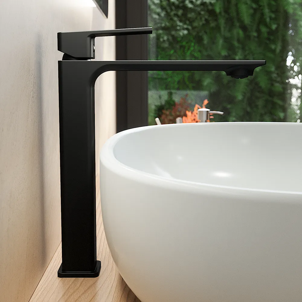 Coppia miscelatori lavabo alto slim bidet senza scarico nero opaco | Ingrid