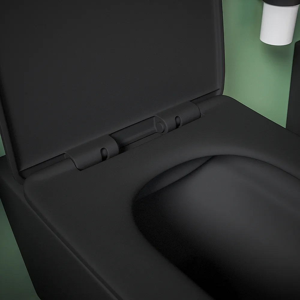La coppia di sanitari sospesi Kyoto rappresenta il perfetto connubio tra design e funzionalità per il bagno moderno. Realizzati in ceramica di alta qualità, questi sanitari sono caratterizzati da un'elegante forma squadrata e da una finitura nero opaco che aggiunge un tocco di raffinatezza all'ambiente bagno, integrandosi con estrema facilità ad ogni contesto.