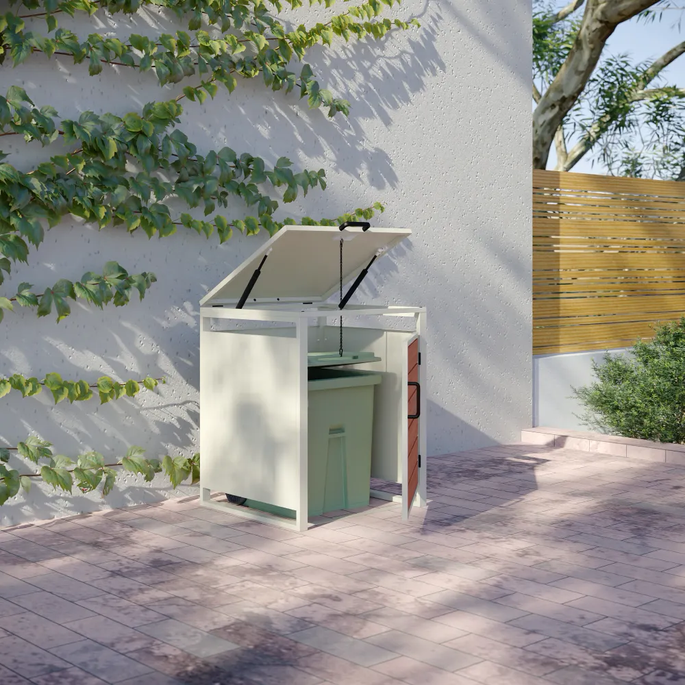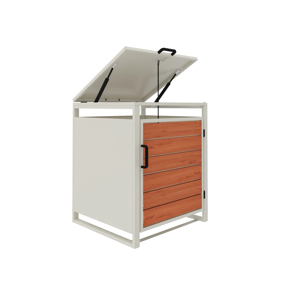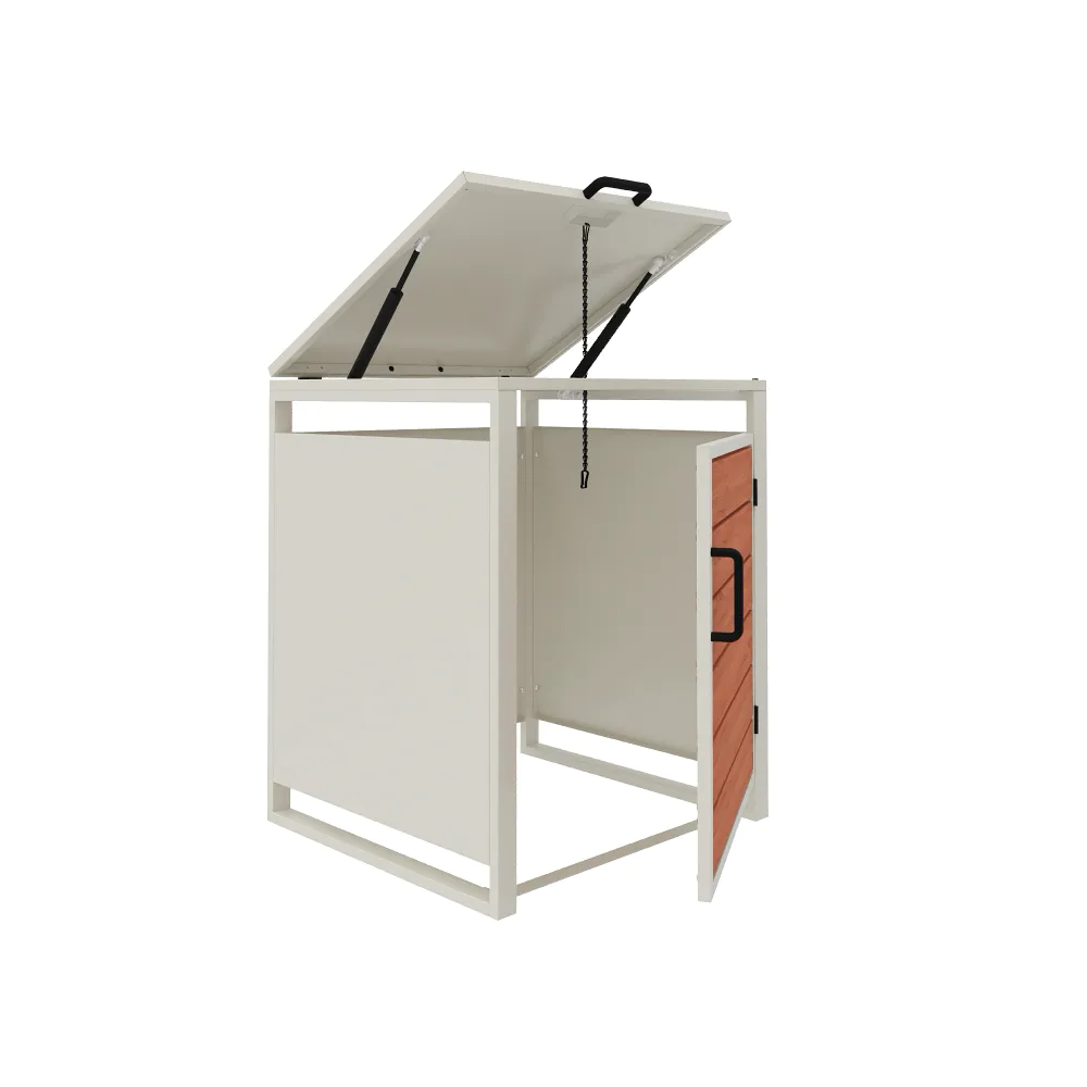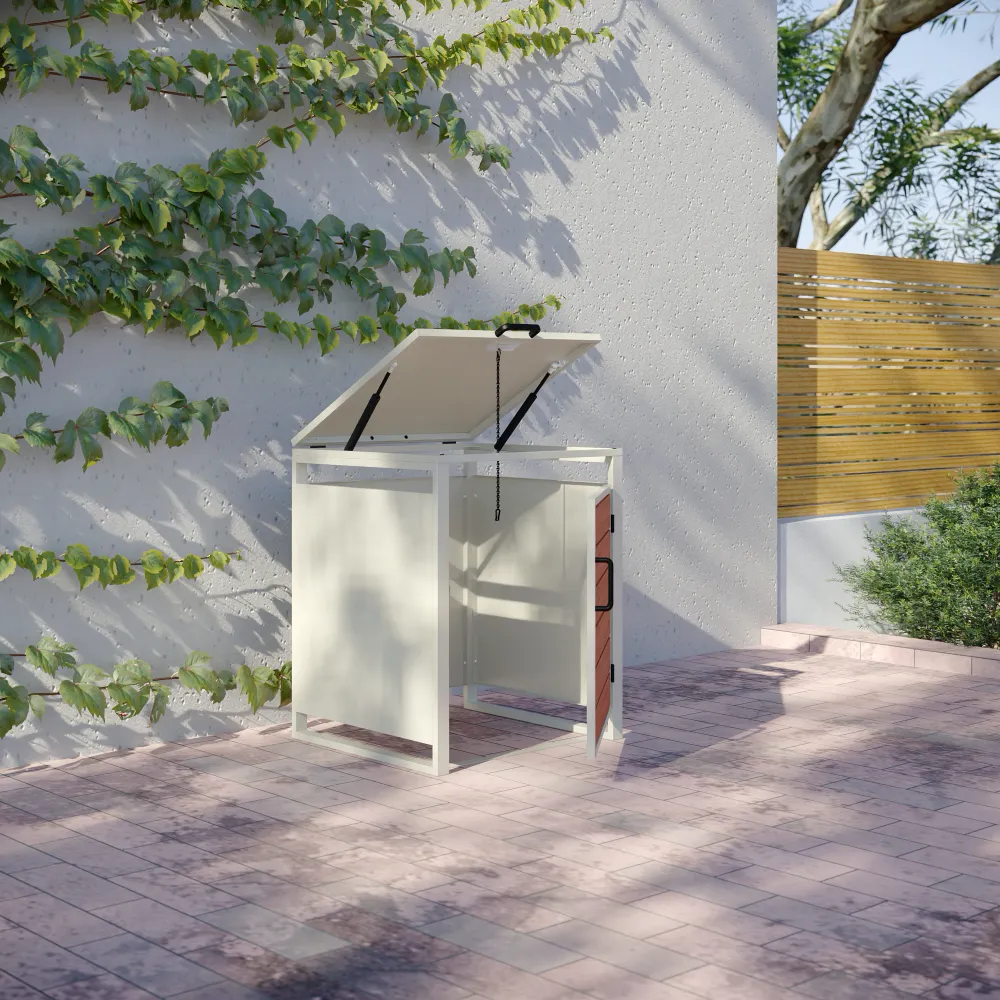 La stabilità del box a un posto è assicurata da un robusto telaio portante avente uno spessore di 0,8 mm. Con un ingombro esterno complessivo di 50 x 50 x 60 cm, il copribidone ottimizza lo spazio a disposizione, mantenendo l'area esterna pulita e ordinata.