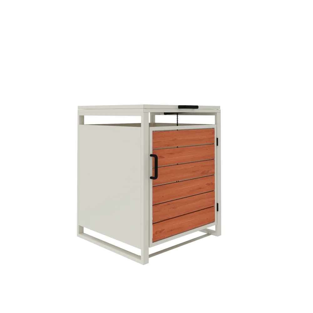 Copri bidoni 1 cassonetto 60L 50x50x64cm in acciaio zincato profili bianchi con pannelli effetto legno | Kubo