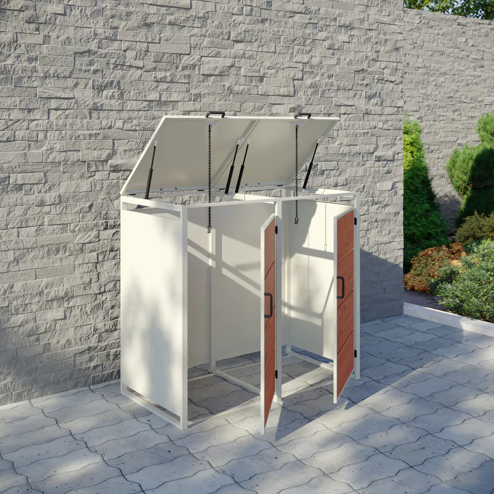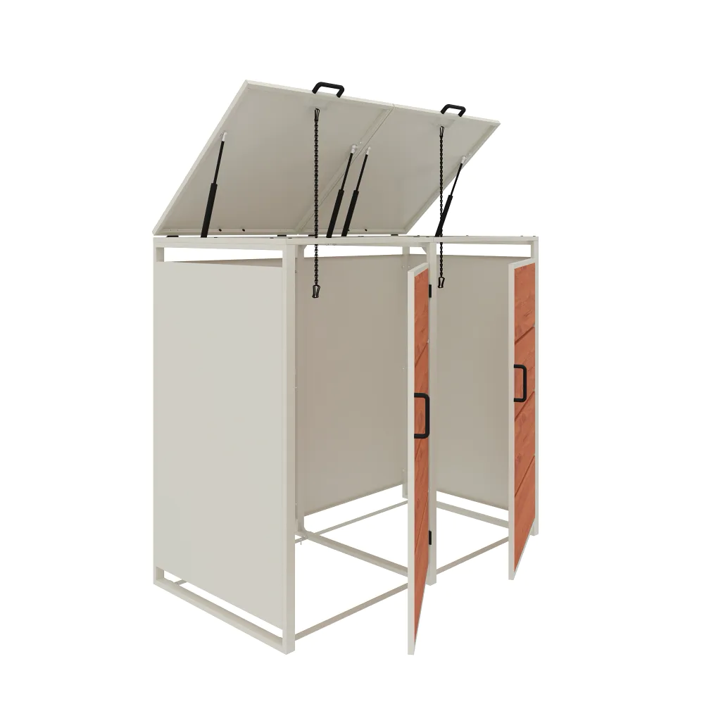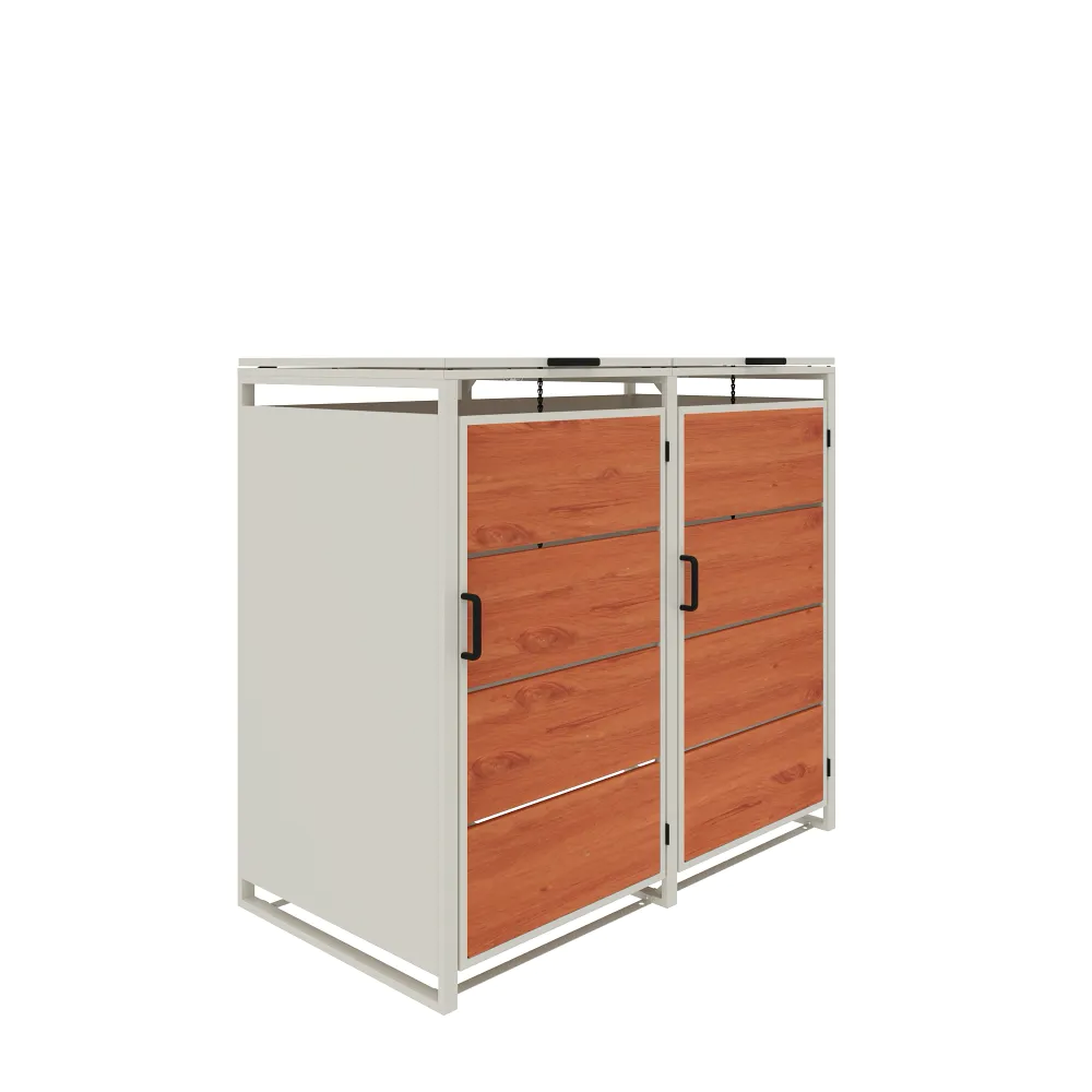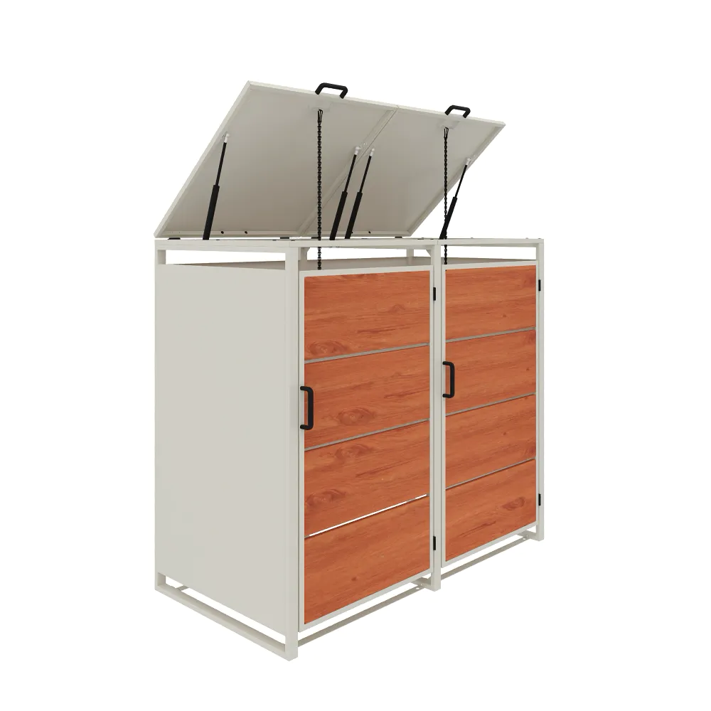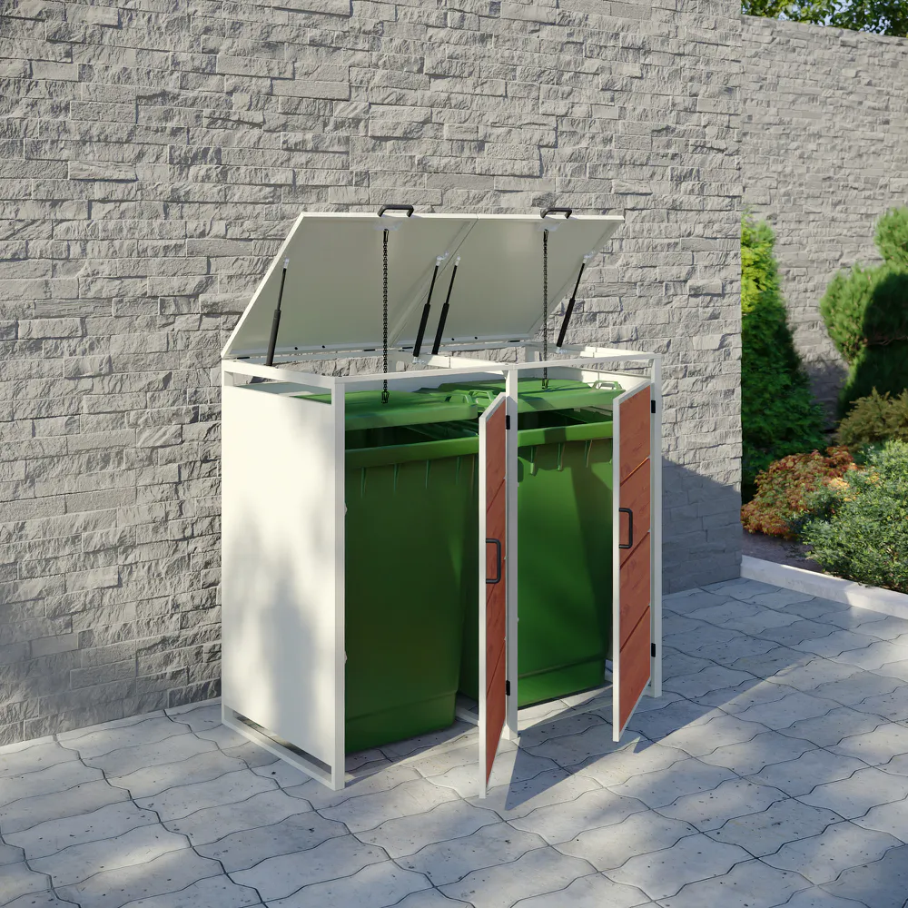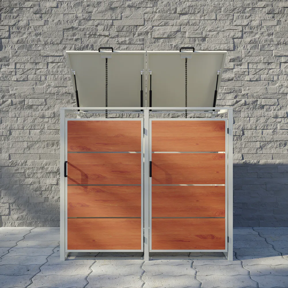 Copri bidoni 2 cassonetti 120L 116x60x105cm in acciaio zincato profili bianchi con pannelli effetto legno | Kubo
