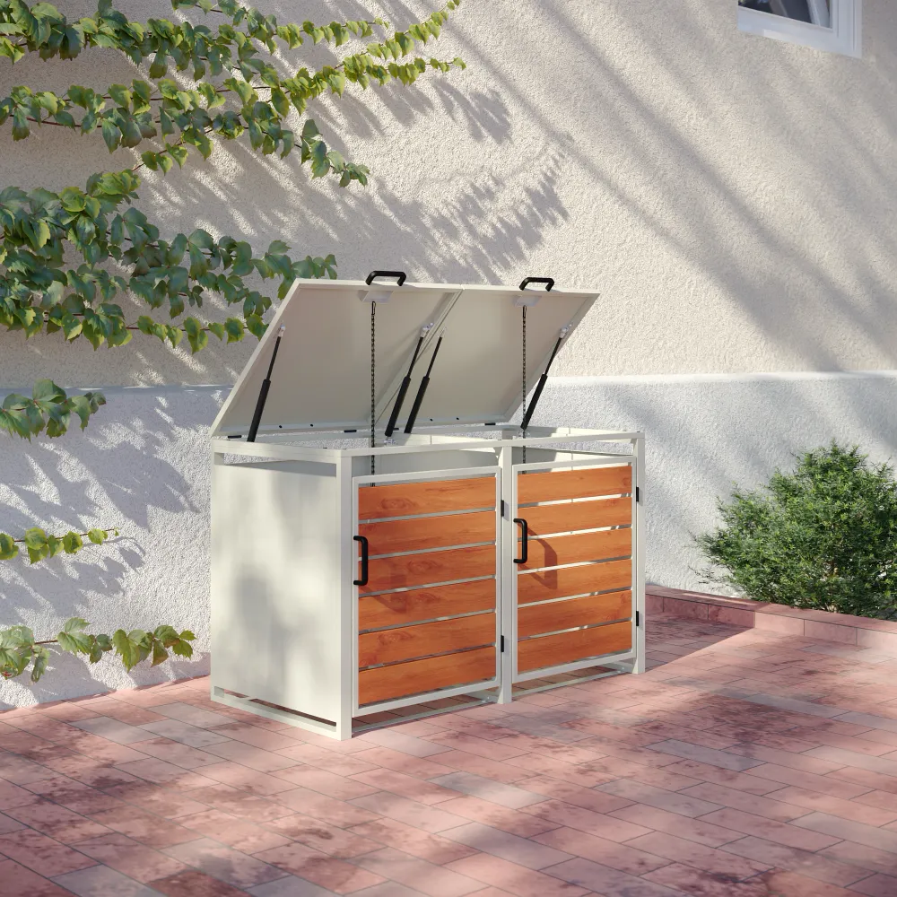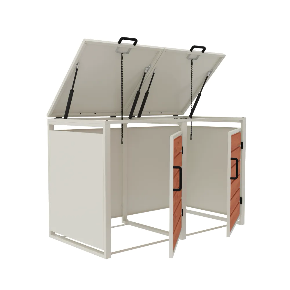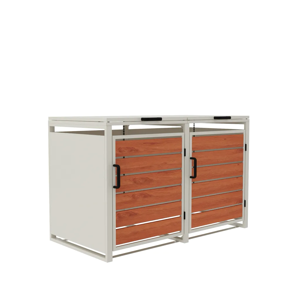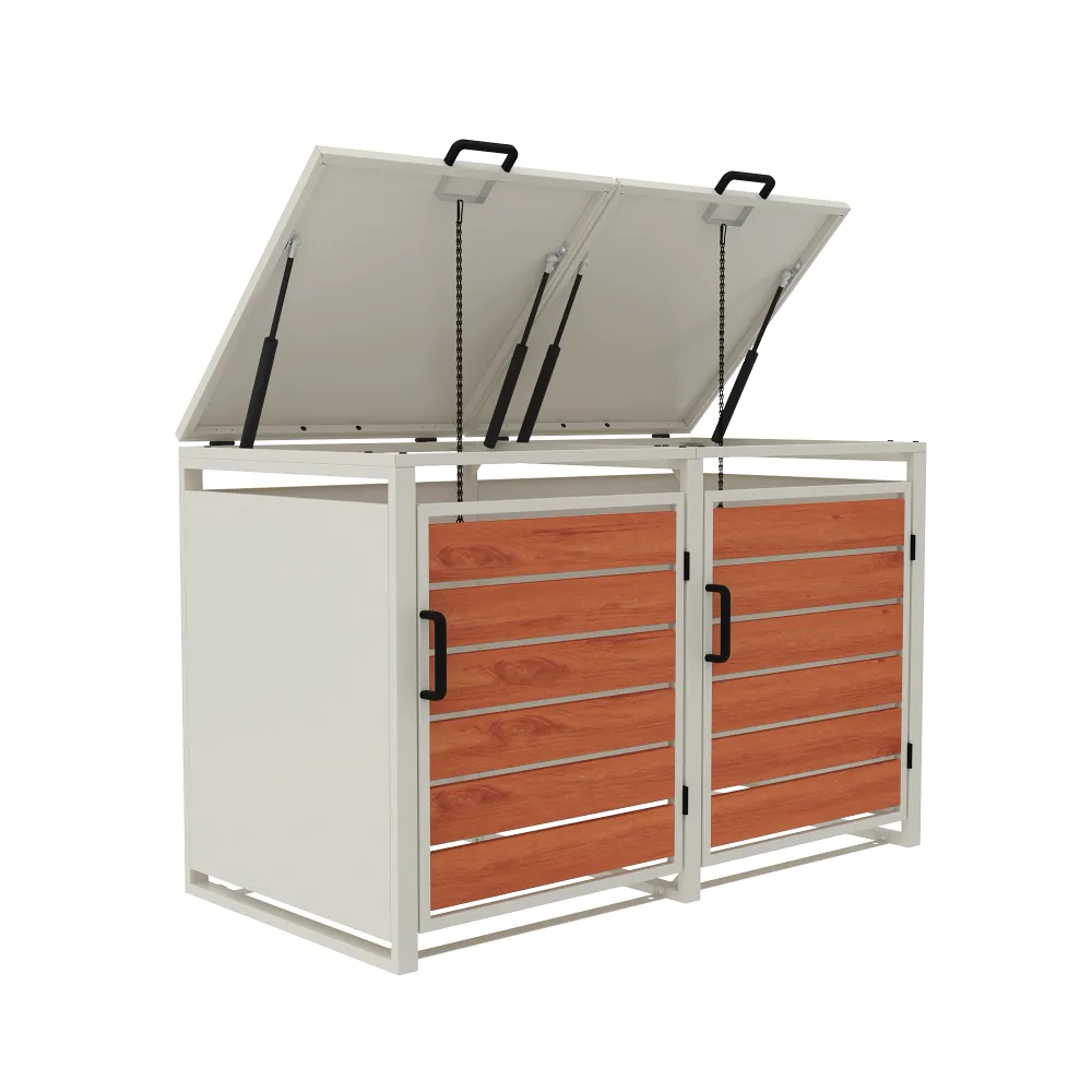 Copri bidoni 2 cassonetti 60L 100x50x64cm in acciaio zincato profili bianchi con pannelli effetto legno | Kubo