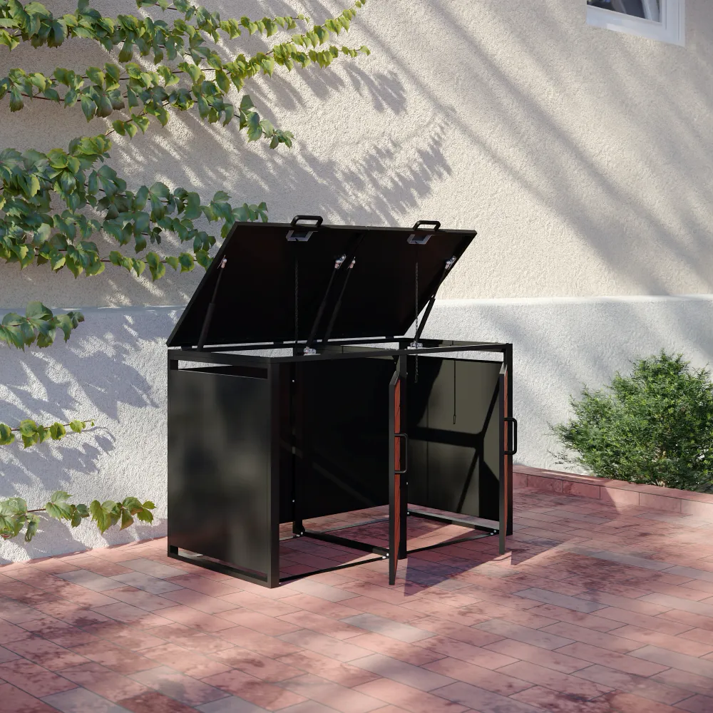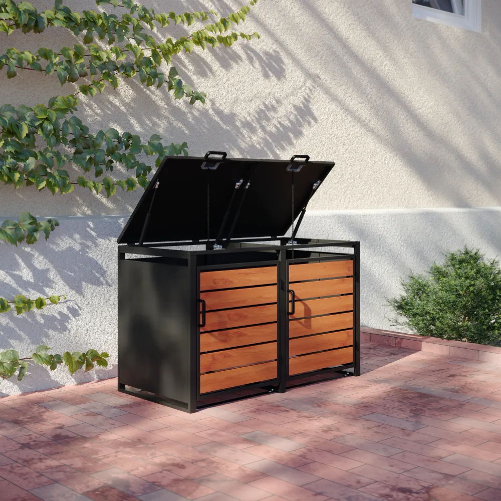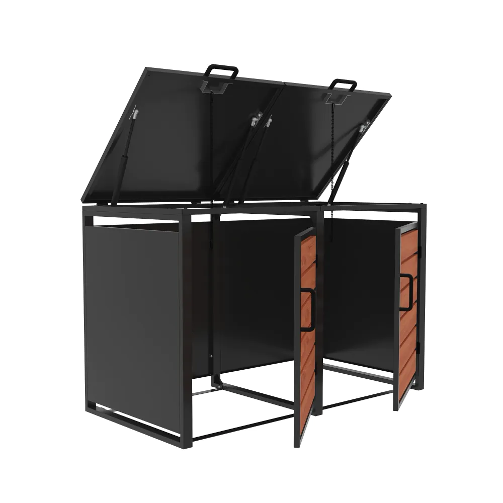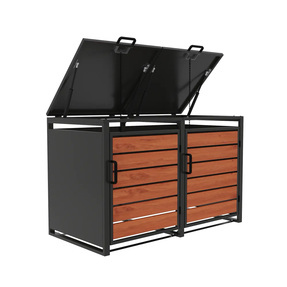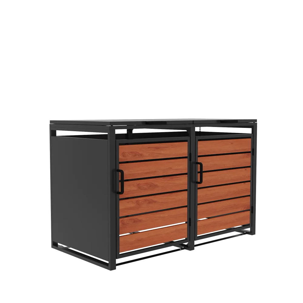 Copri bidoni 2 cassonetti 60L 100x50x64cm in acciaio zincato profili neri con pannelli effetto legno | Kubo