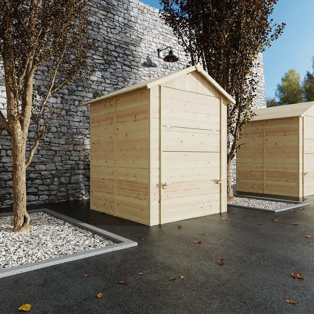 La struttura del chiosco è realizzata con perline in legno da 20 mm di spessore, che garantiscono solidità e isolamento, mentre il telaio delle pareti da 23x23 mm assicura stabilità e robustezza nel tempo. Questa combinazione rende il chiosco non solo resistente all'uso frequente, ma anche esteticamente gradevole grazie alla finitura naturale del legno.
