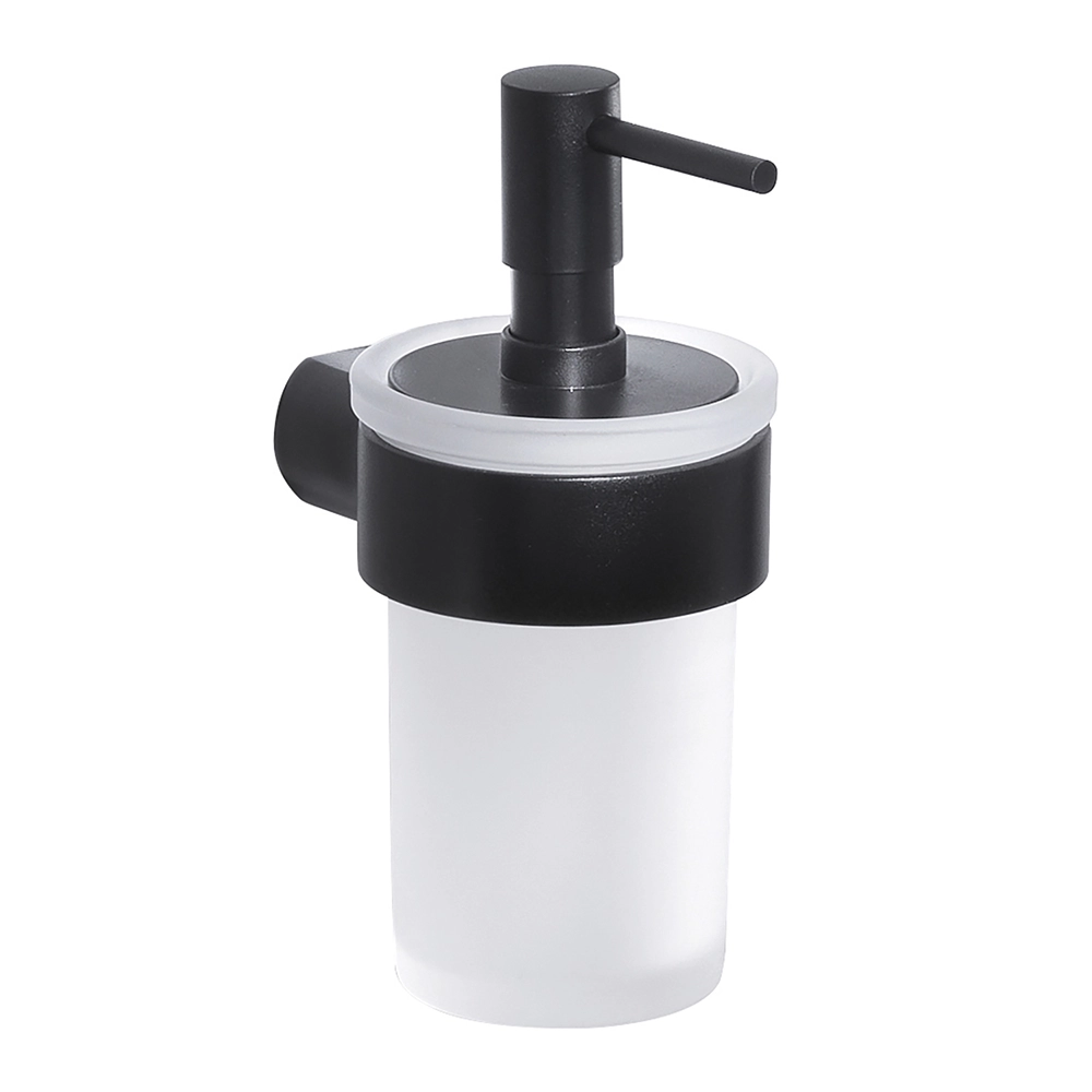 Dispenser dosasapone a muro Gedy in vetro satinato e ottone nero opaco mod. Pirenei