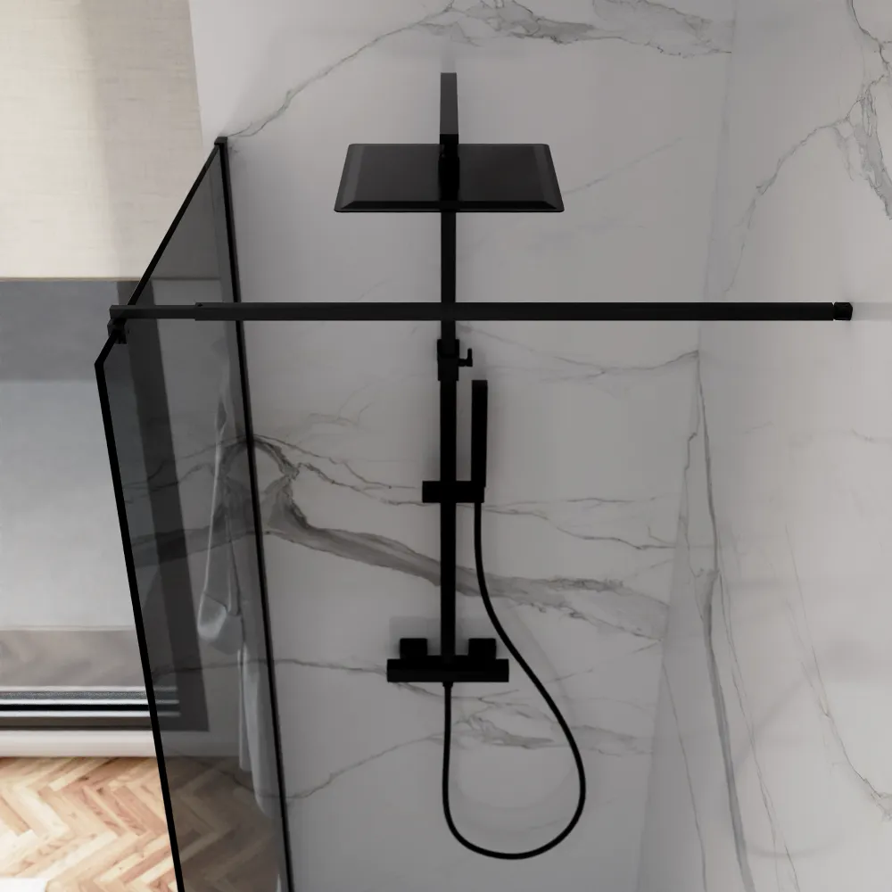 Doccia walk-in 100 cm vetro 8mm anticalcare fumé h200 profili neri | Keros