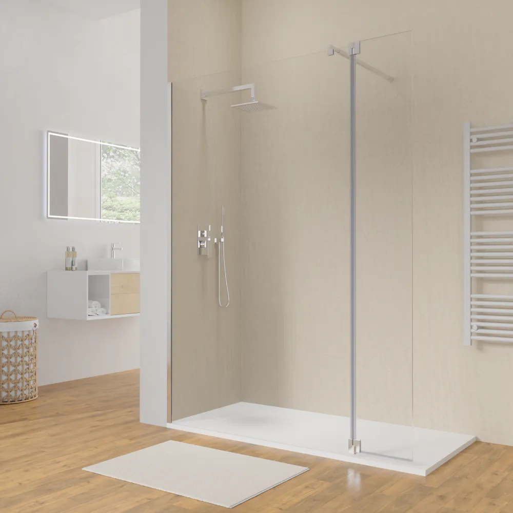 Doccia walk-in 100cm + anta 30cm vetro 8mm trasparente profili cromo | Keros