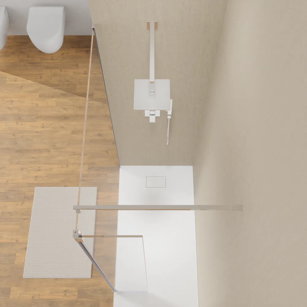 La parete doccia Keros è dotata di un'anta girevole paraspruzzi da 30 cm. Questo componente aggiuntivo offre versatilità nel tuo utilizzo quotidiano della doccia, consentendo di evitare schizzi d'acqua indesiderati nel resto del bagno.