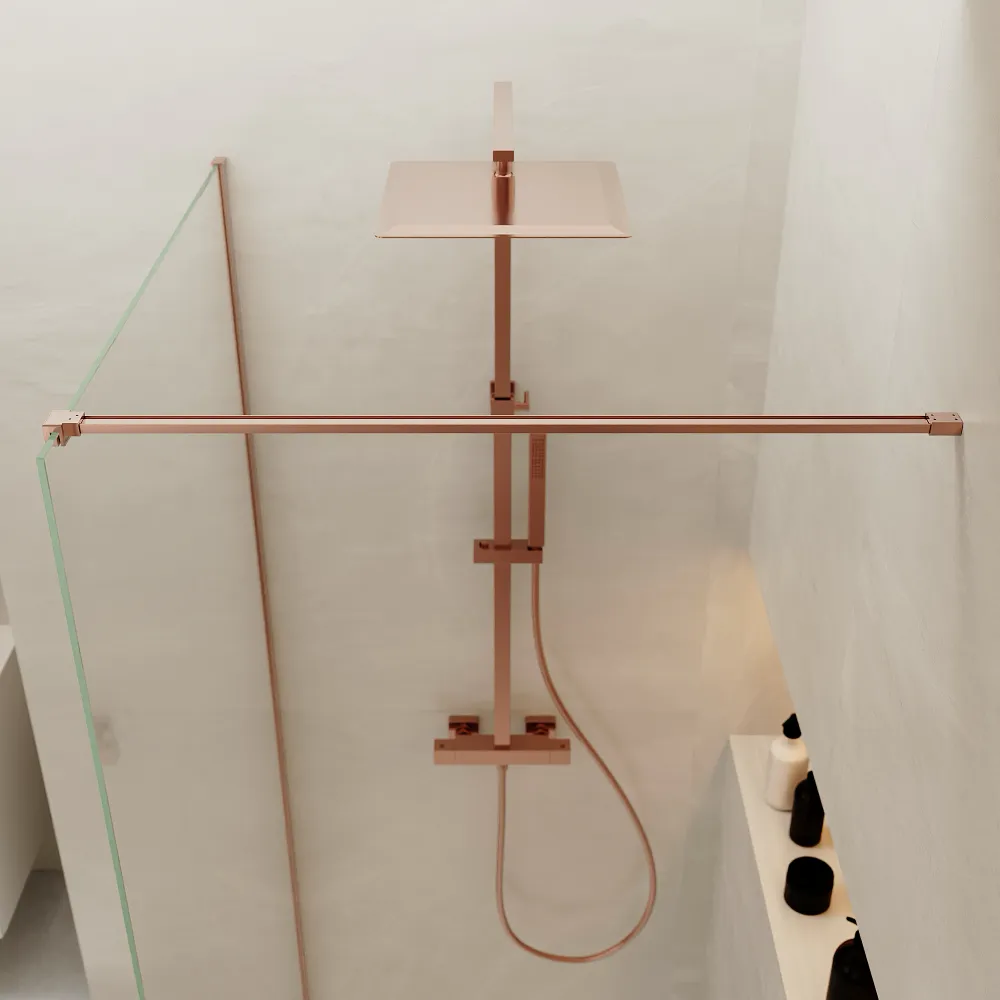 Doccia walk-in 120 cm vetro 8mm anticalcare h200 profilo rame spazzolato | Keros
