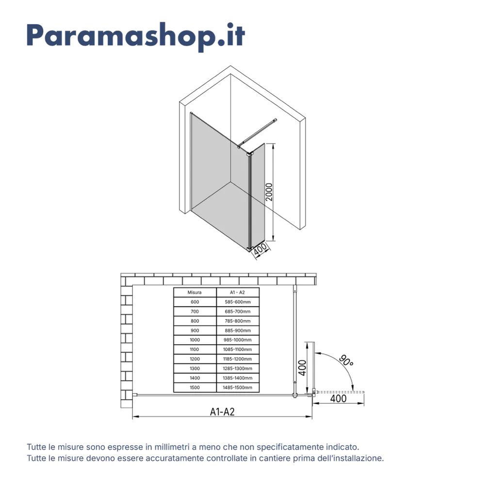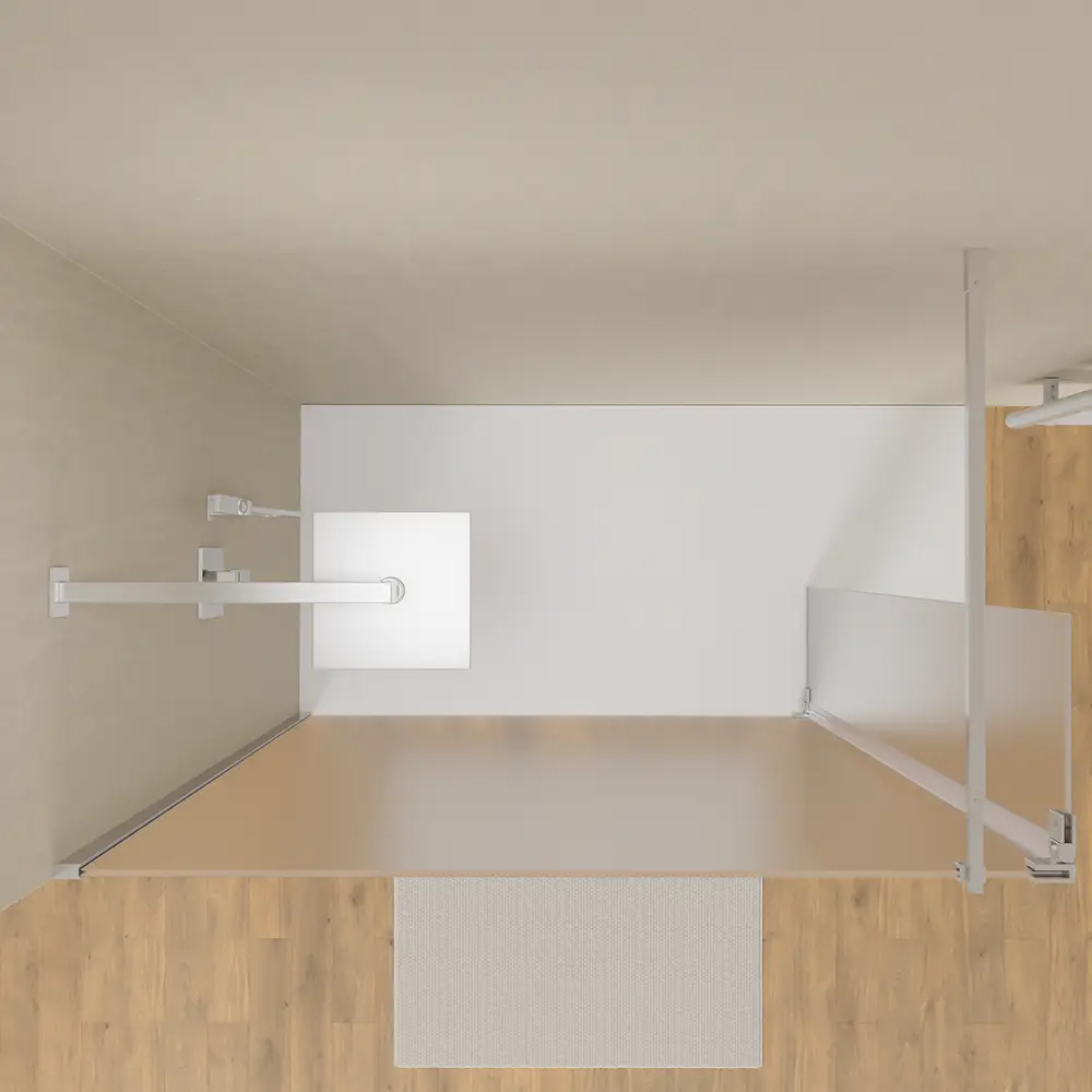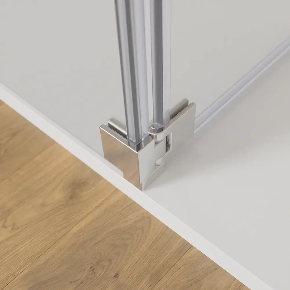 L'installazione è reversibile dunque il walk-in Keros può essere installato sia con orientamento a destra, sia con orientamento a sinistra. Il montaggio può avvenire direttamente a pavimento o in appoggio su piatto doccia. Grazie alla tolleranza di 1,5cm, sarà possibile procedere all'installazione anche in caso di piccoli fuori squadro.