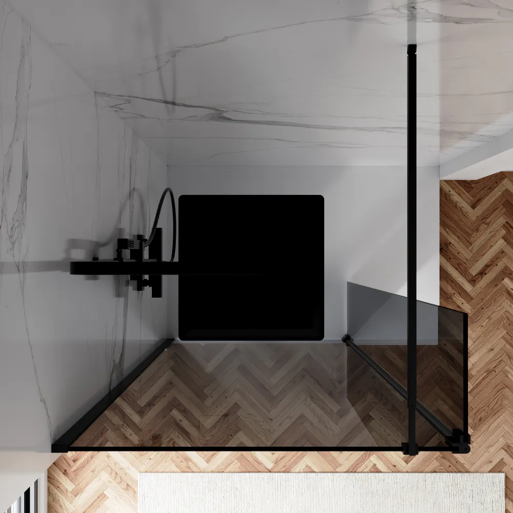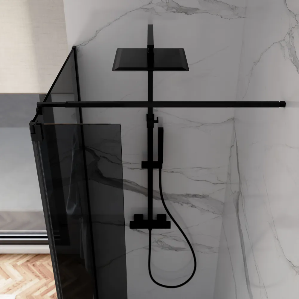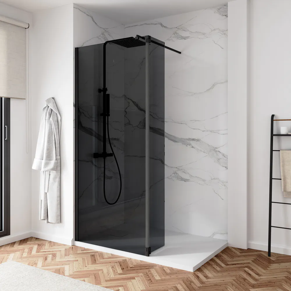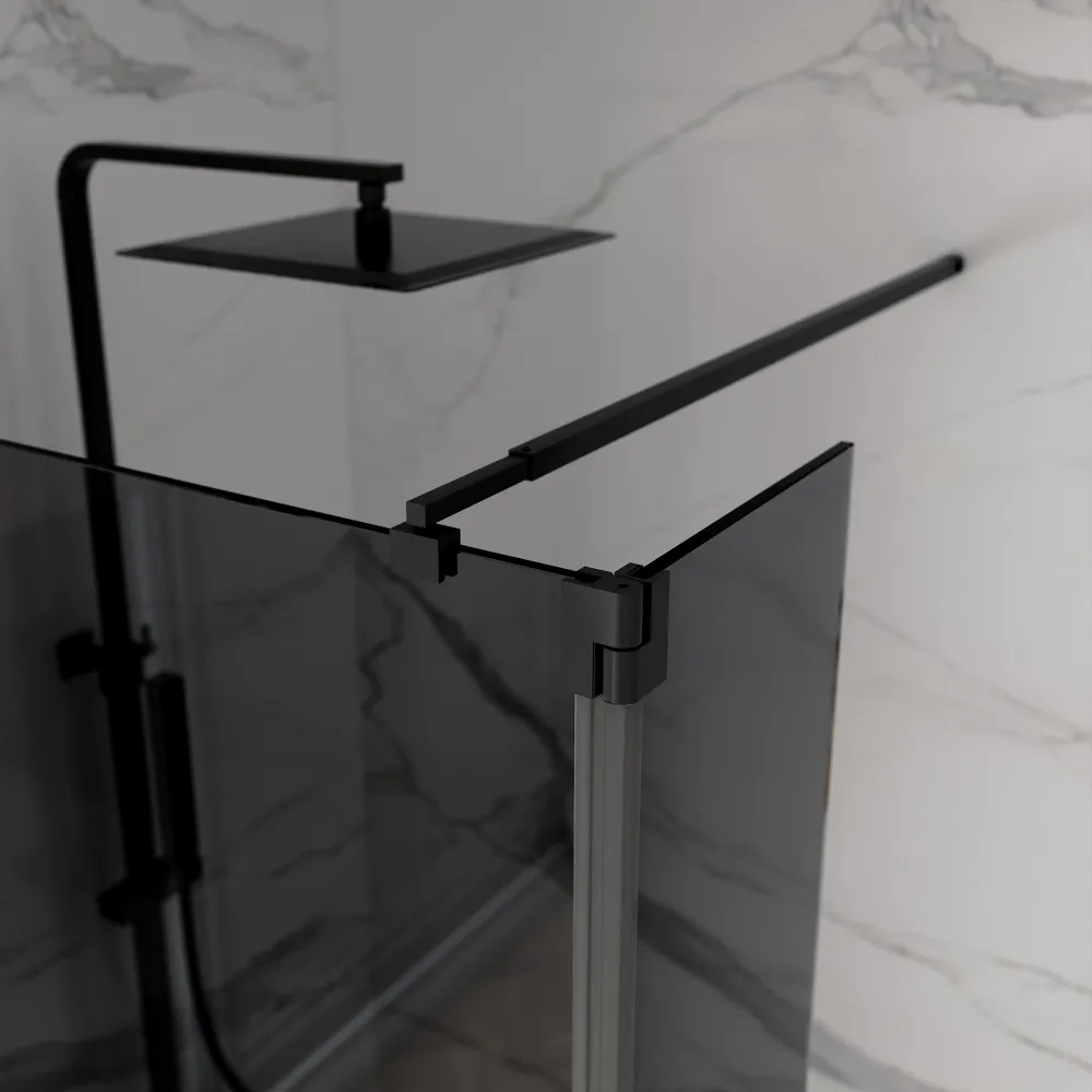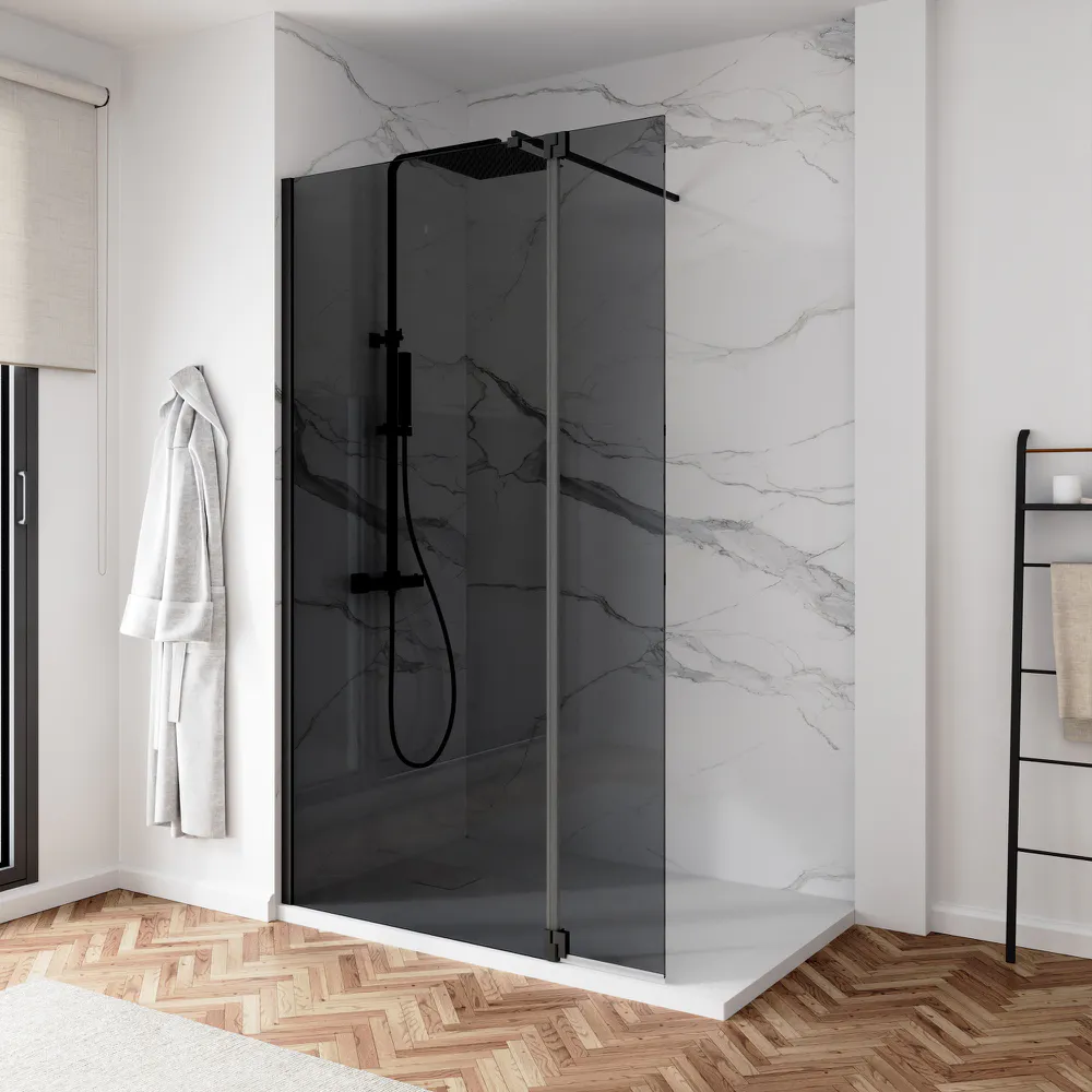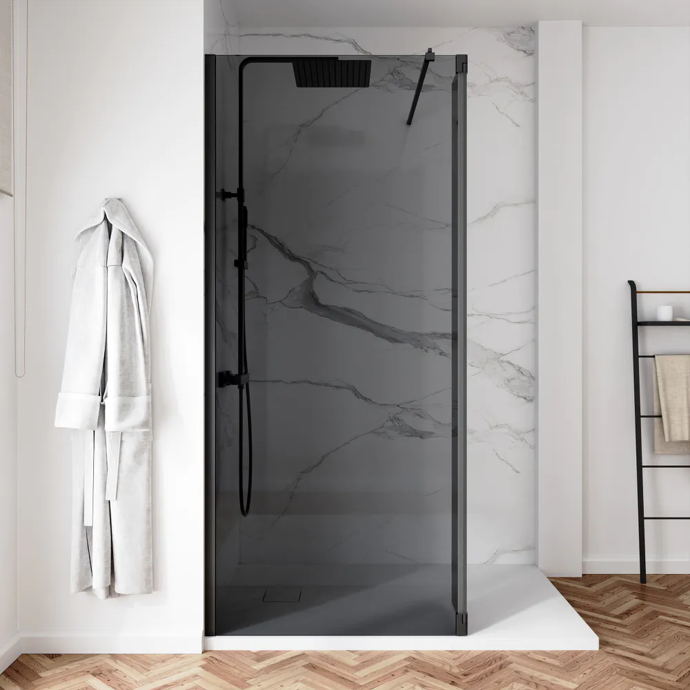 Doccia walk-in 70cm + anta 40cm vetro 8mm fumé profili neri | Keros