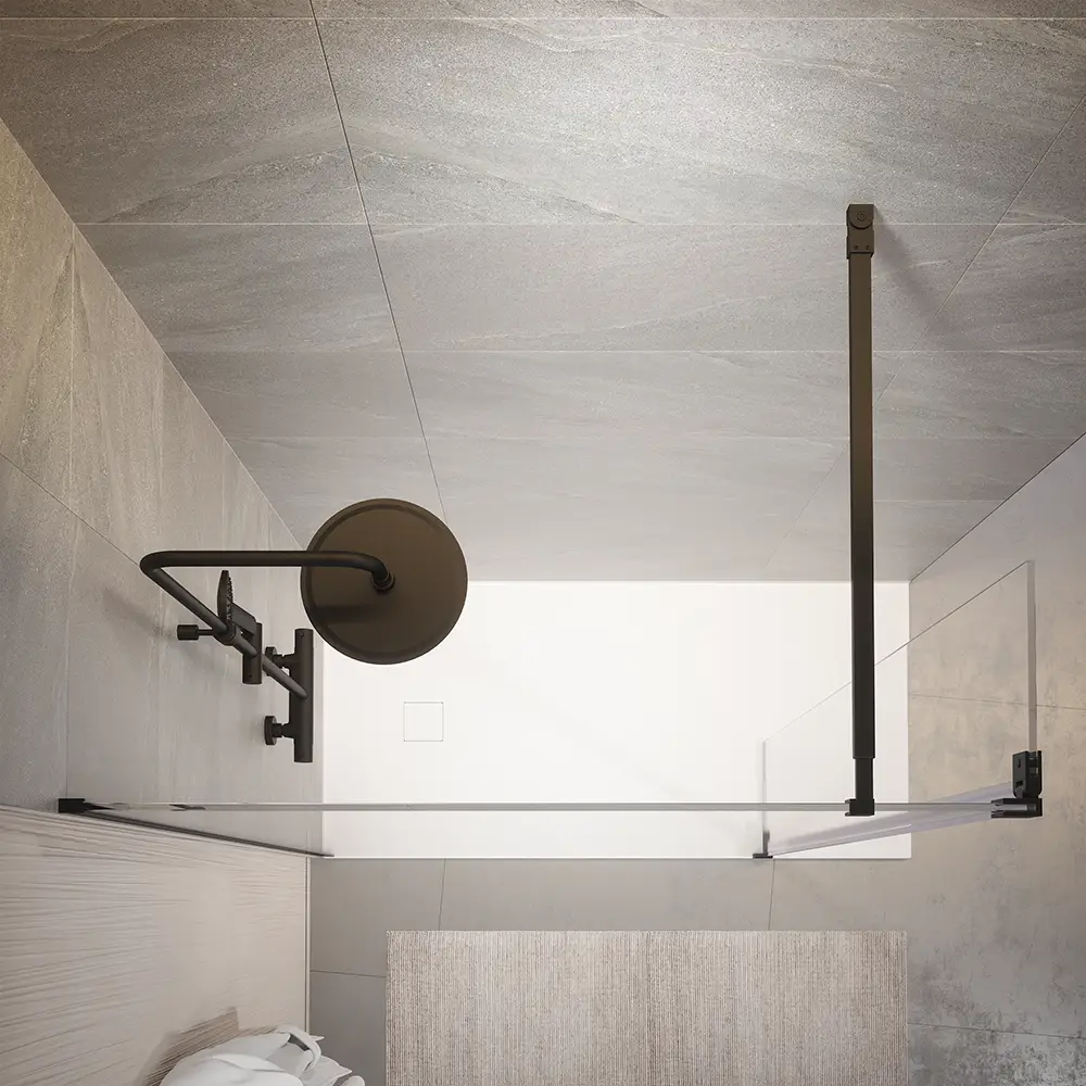 La barra stabilizzatrice telescopica orientabile è un componente essenziale nelle pareti doccia o negli ambienti in cui è presente vetro temperato spesso, come nelle docce walk-in. Questa barra ha la funzione di stabilizzare il vetro, contribuendo a mantenere la struttura solida e impedendo il movimento indesiderato del vetro stesso. Al contrario della maggior parte degli altri prodotti in circolazione, la barra stabilizzatrice impiegata nel walk-in Naxos è orientabile: ciò consente di installare il walk-in doccia anche in spazi con vincoli architettonici, come finestre o altri elementi estranei. Questa versatilità rende il processo di installazione più agevole e consente di sfruttare al massimo lo spazio disponibile nel bagno, consentendo una soluzione di design elegante e funzionale. Oltre a ciò, la barra è telescopica dunque regolabile da 66cm a 120cm senza la necessità di effettuare alcun taglio!