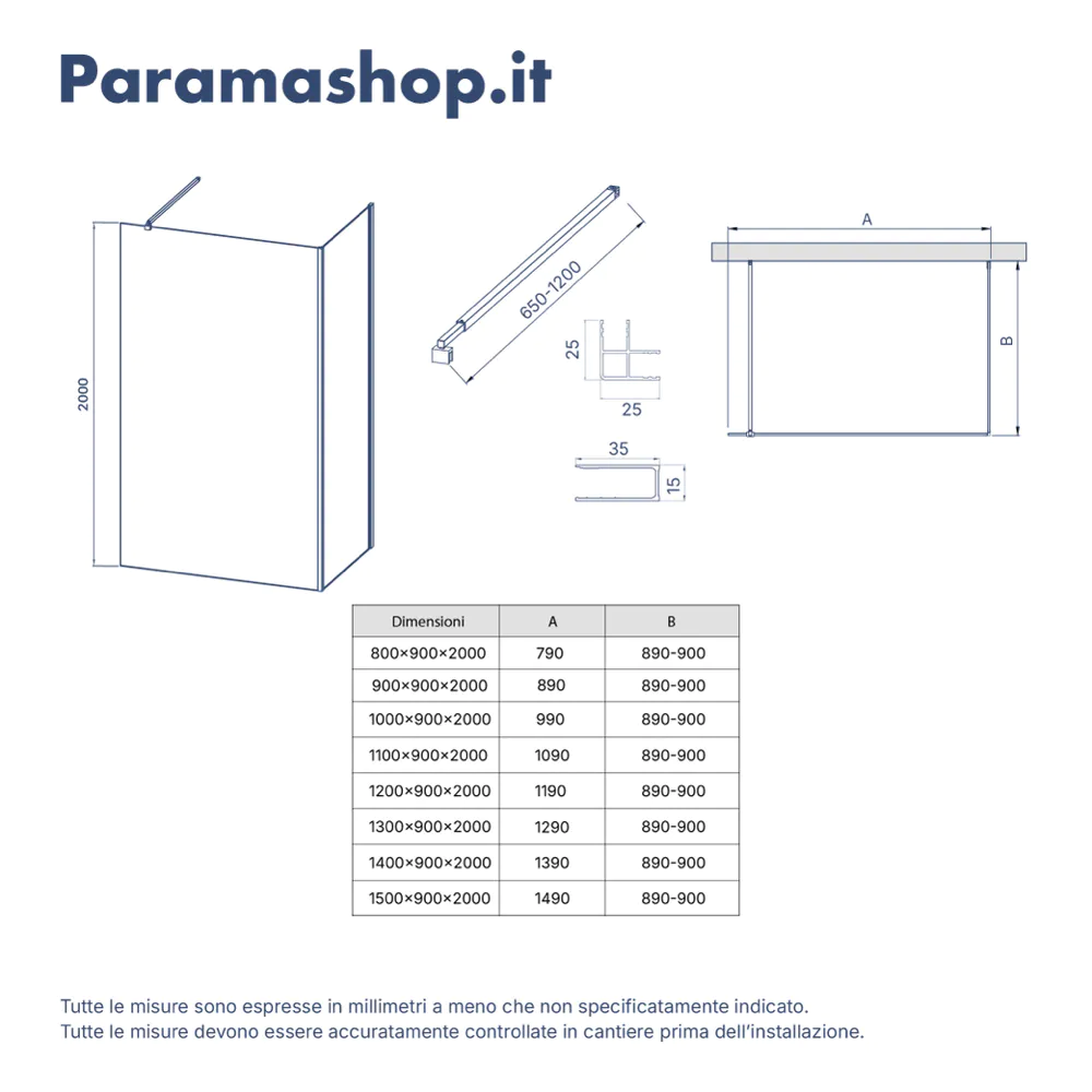 - Vetro 8mm trasparente con trattamento Easy-clean