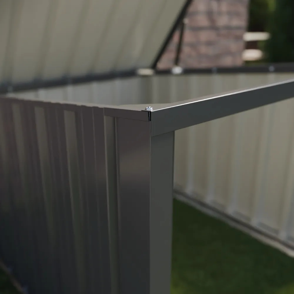 La struttura garantisce un'eccellente resistenza alle intemperie e alla ruggine: è supportata da un solido telaio (spessore 0,6 mm) e da resistenti pannelli in lamiera (0,25 mm), ideali per proteggere il tuo tosaerba da pioggia, sole cocente e grandine nel corso degli anni.