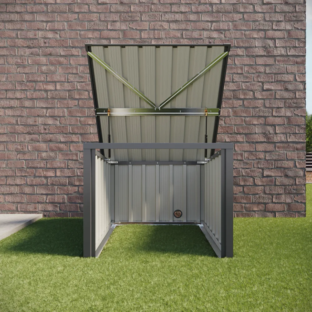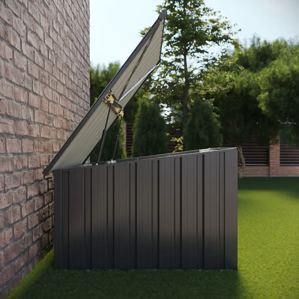 Con le sue dimensioni di 89 x 90,5 cm, questa casetta offre uno spazio capiente per l'attrezzatura, integrandosi con eleganza e discrezione in qualsiasi angolo del tuo giardino o cortile.