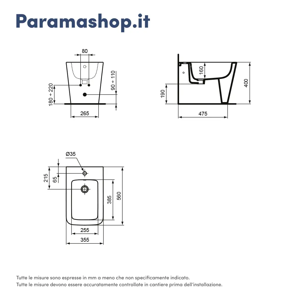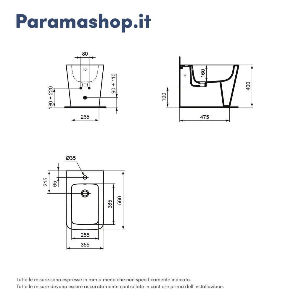 La curva tecnica ed il sifone per il bidet non sono inclusi ma possono essere acquistati separatamente nell'apposita sezione sul nostro store.