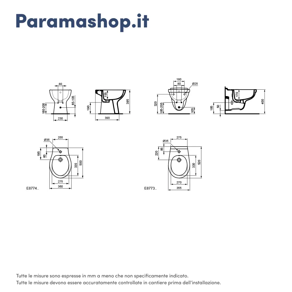 La curva tecnica e il miscelatore per bidet non sono inclusi nella confezione, ma sono acquistabili separatamente nell'apposita categoria sul nostro shop.