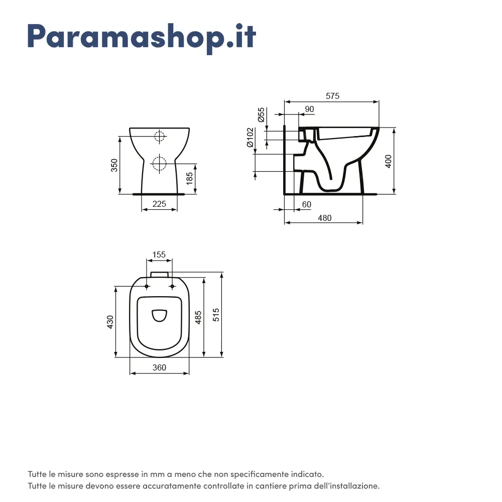 IDEAL STANDARD Vaso a terra con scarico a parete con sedile a chiusura normale | I.Life A