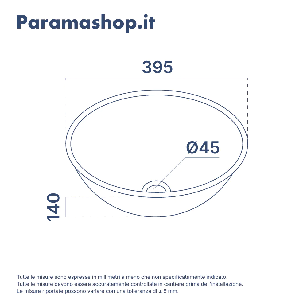 Realizzato in vetro di altissima qualità con un solido spessore di 10 mm, garantisce un'eccellente robustezza. Le sue dimensioni, con un diametro di 39,5 cm e un'altezza di 14 cm, offrono un catino confortevole e capiente che limita gli schizzi d'acqua.