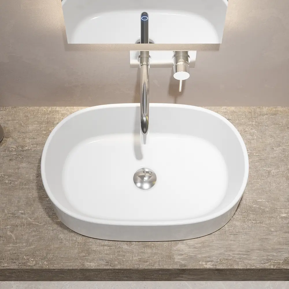 Lavabo da Appoggio Ovale in Ceramica Bianca: Eleganza Moderna per il Tuo Bagno