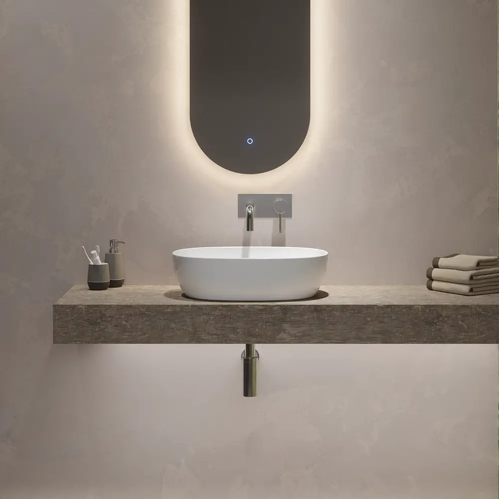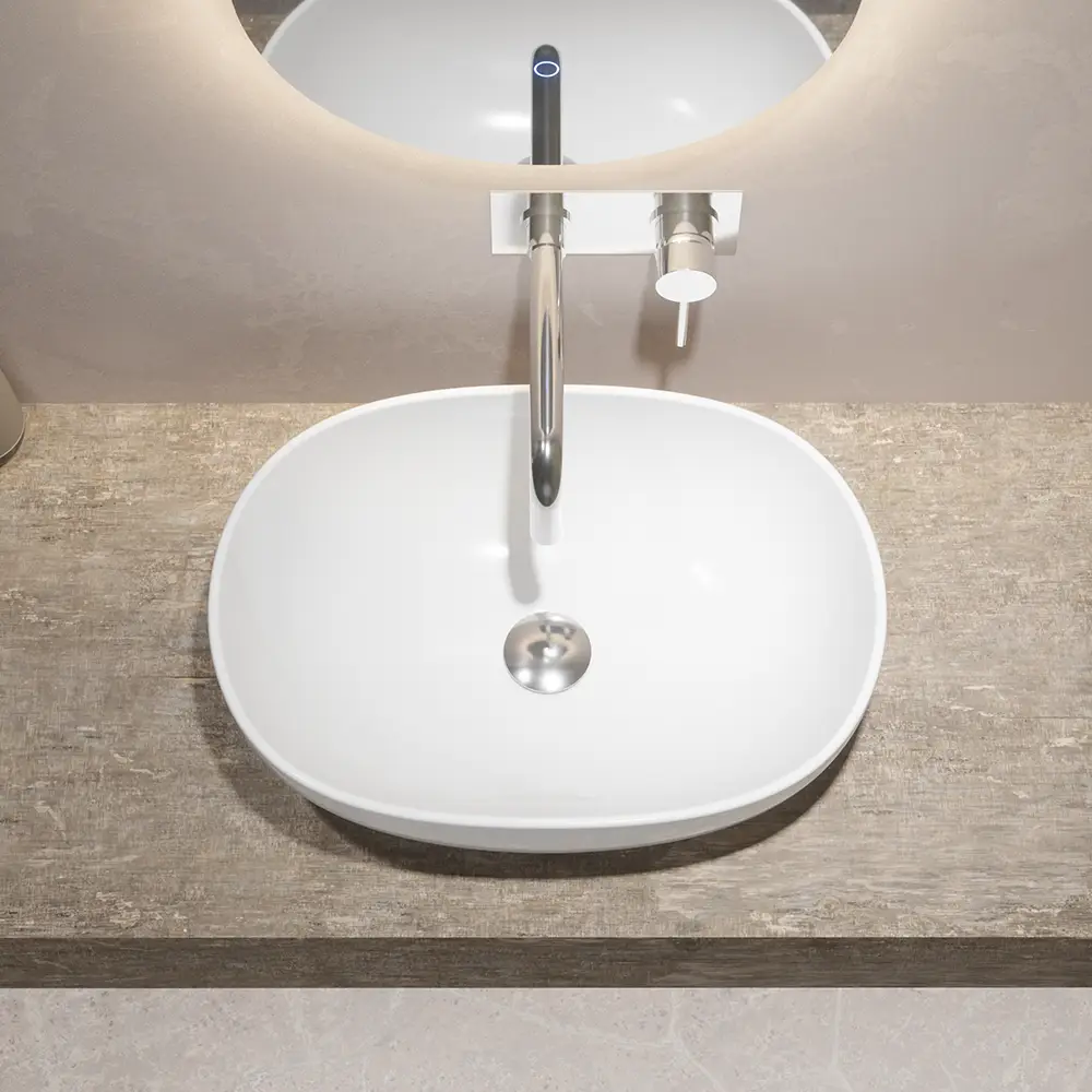 Sia che tu stia cercando di aggiornare il tuo bagno con un tocco di modernità o che stia progettando un nuovo spazio con un design contemporaneo, il lavabo da appoggio ovale con bordo slim è una scelta eccellente che unisce stile e funzionalità in modo impeccabile.