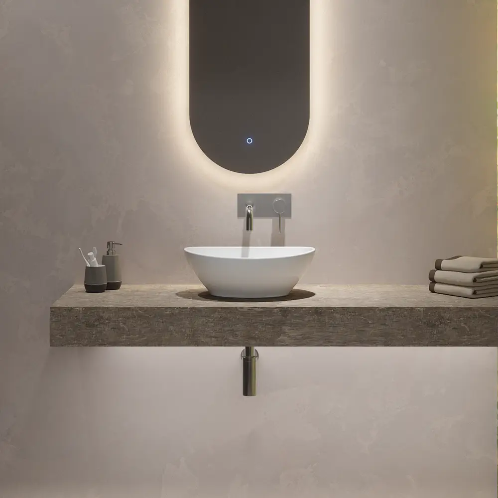 Si installa in appoggio su mensoloni e mobili con top e grazie alle sue peculiari dimensioni (41x34,5x14 cm), questo versatile lavabo si adatta perfettamente anche agli spazi più ridotti.