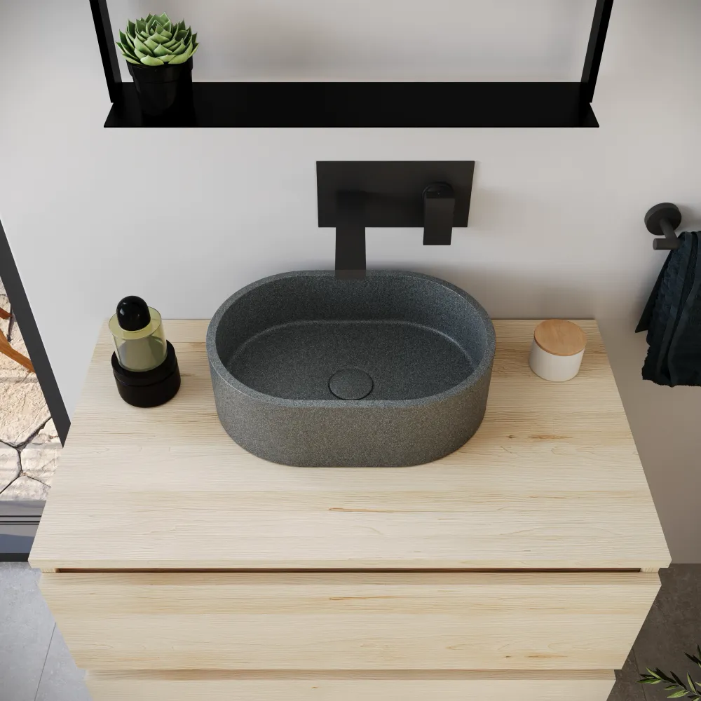 Lavabo da appoggio ovale in microcemento 40x28x12 cm grigio | Bolsena