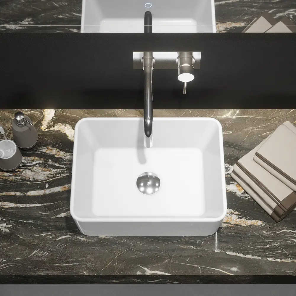 Con le sue dimensioni compatte, questo lavabo è ideale per bagni più piccoli o per creare un angolo lavabo distintivo in ambienti più ampi. Sia che tu stia progettando un nuovo bagno o aggiornando quello esistente, il lavabo da appoggio rettangolare in ceramica bianca combina funzionalità, stile e qualità costruttiva per arricchire il tuo spazio con un tocco di modernità.