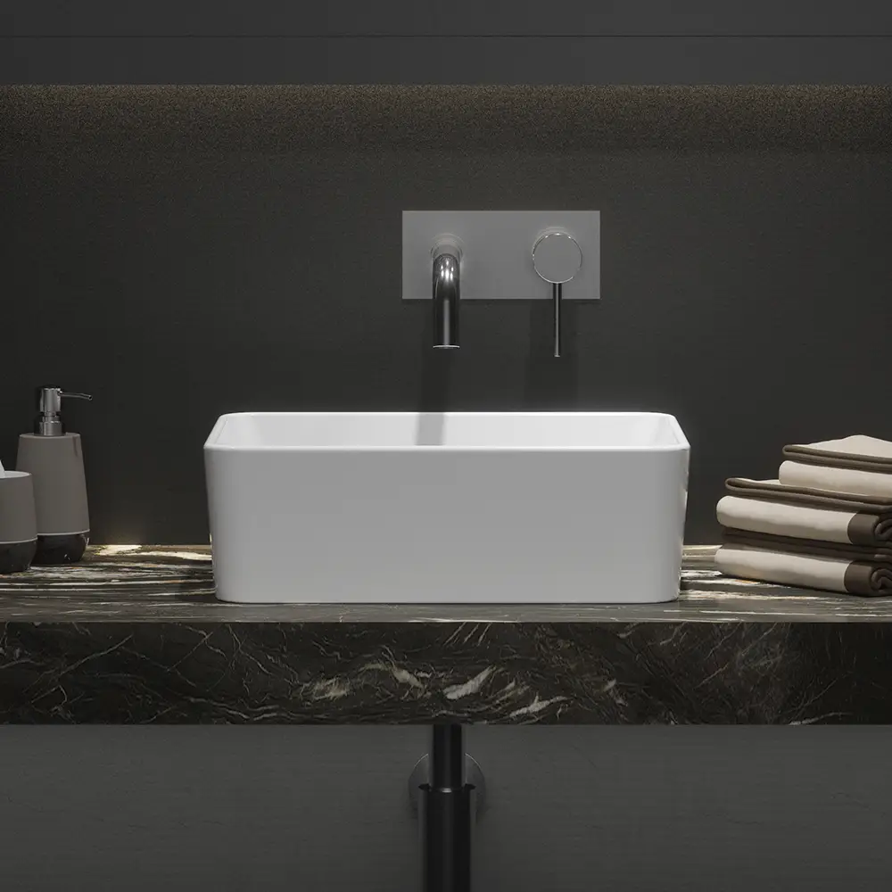 Lavabo da Appoggio Rettangolare in Ceramica Bianca: Eleganza e Funzionalità per il Tuo Bagno