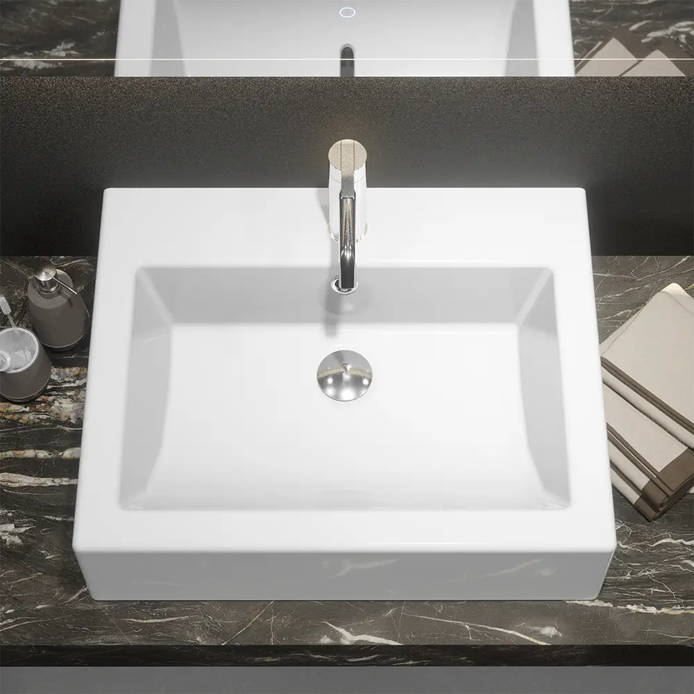 Lavabo da appoggio rettangolare con troppopieno 56x45x15 cm Bianco