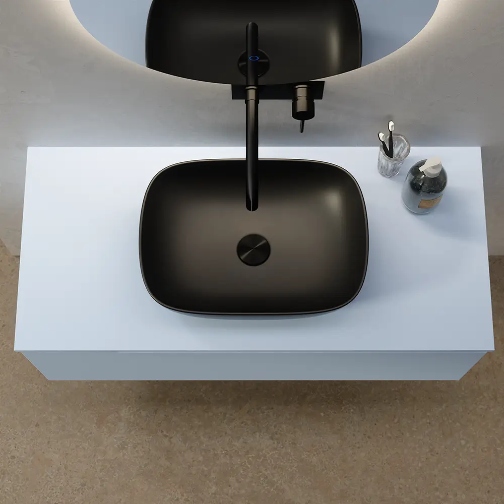 Lavabo da appoggio slim di forma rettangolare 46,5x33x13,5 cm Nero opaco