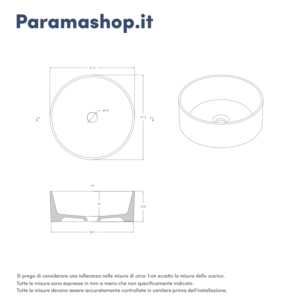 Lavabo da appoggio tondo 37,5x37,5x13,5 bianco opaco | Tirreno
