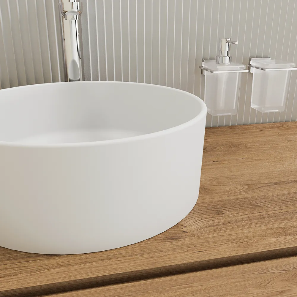 La vasca circolare offre ampio spazio per lavarsi le mani e il viso con facilità, mentre la sua profondità ottimale evita gli schizzi.