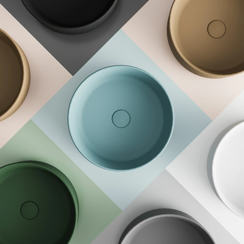 La vasca circolare offre ampio spazio per lavarsi le mani e il viso con facilità, mentre la sua profondità ottimale evita gli schizzi.