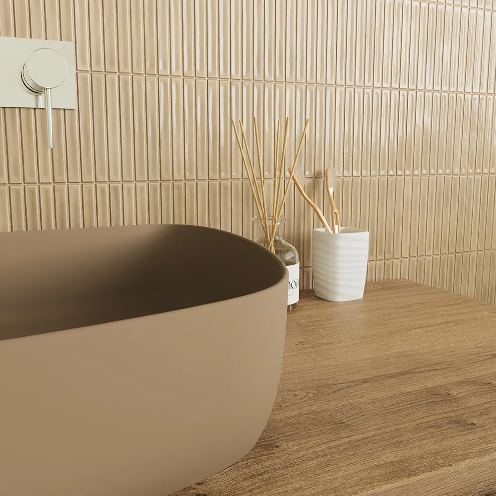 Dona un tocco di raffinatezza al tuo bagno con il lavabo da appoggio Persico. La sua forma tonda e la finitura tortora creano un'atmosfera elegante e minimalista, perfetta per ambienti moderni e contemporanei.